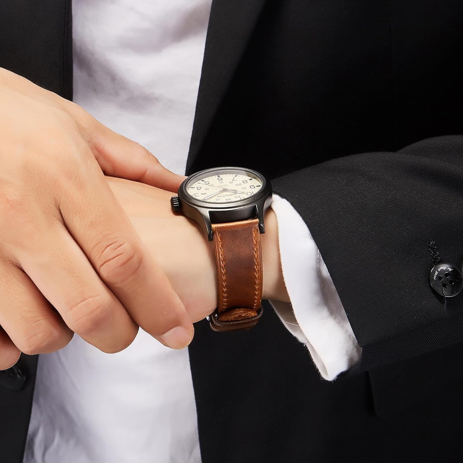 Leather Watch Band, Italian Crazy Horse/Oil-Waxed/Vegetable-Tanned Leather, Quick Release Watch Strap for Men and Women, Band Width 18mm20mm22mm