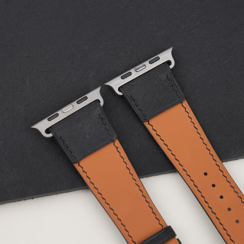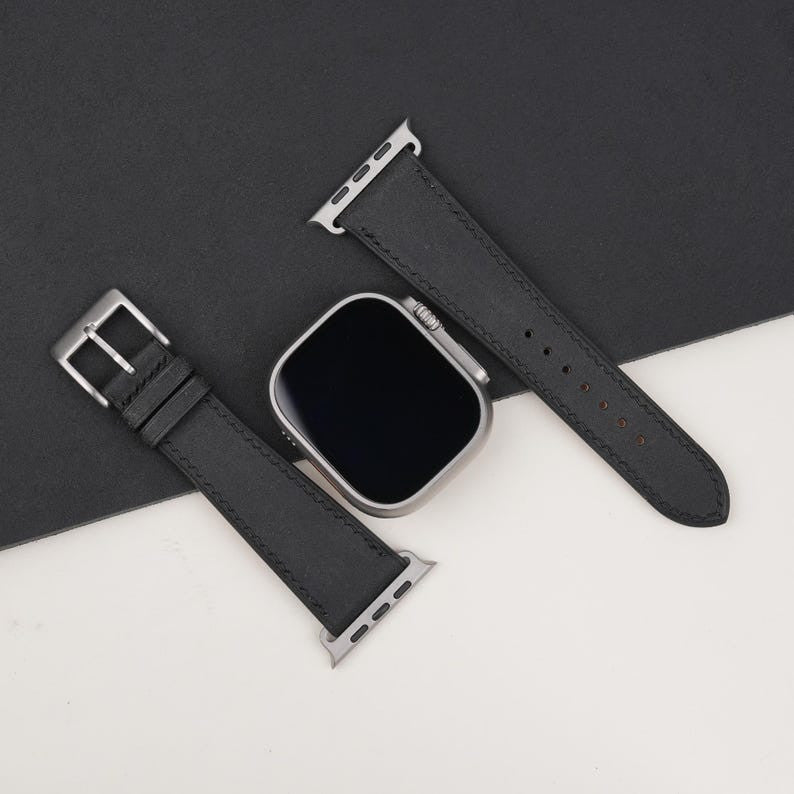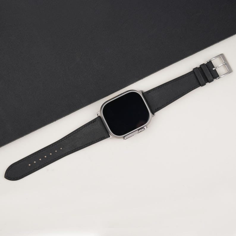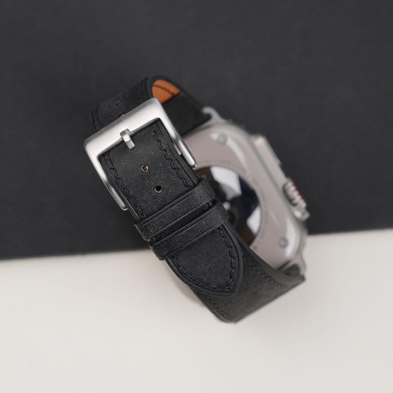 Black Badalassi Carlo Pueblo Leather Apple Watch Ultra Band 49mm, Leather Apple Watch Ultra Strap, handmade strap