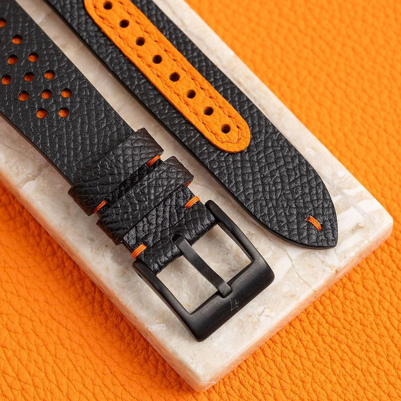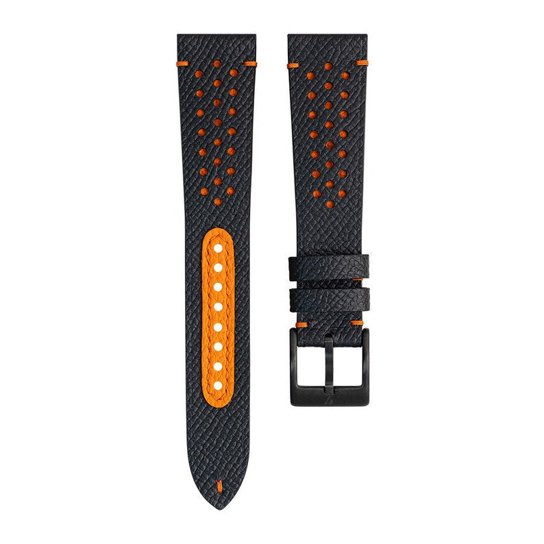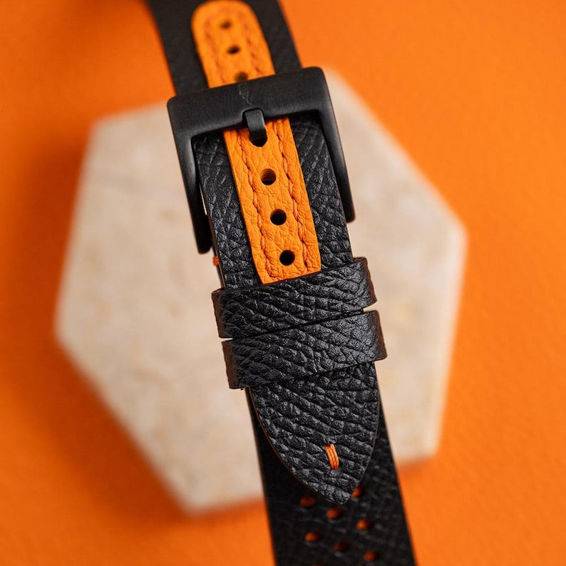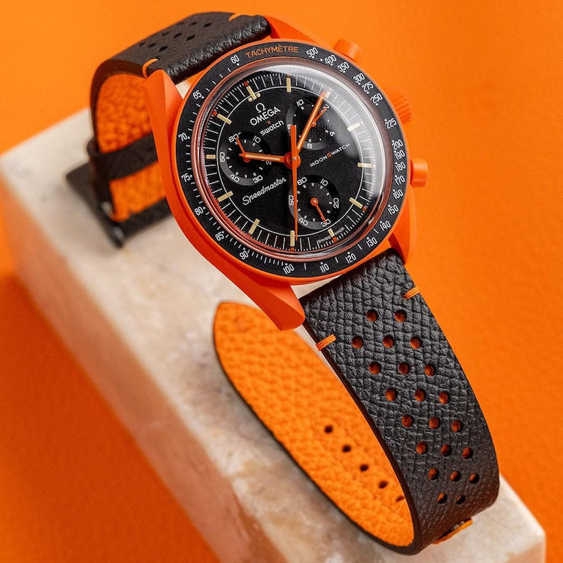 Black Orange Epsom Rally Strap for Moonswatch Lava
