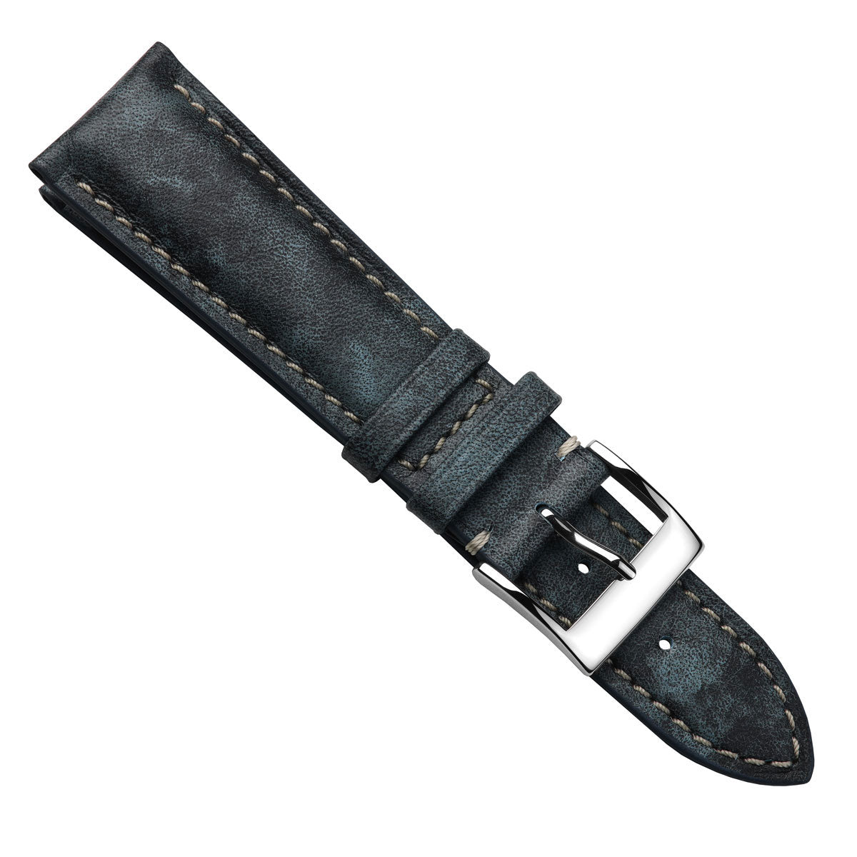 Laverton Padded Patina Calf Leather Watch Strap - Blue Jeans