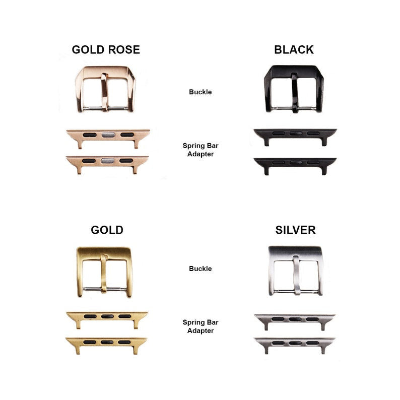 The strap will come FREE with a tang buckle / Quick release spring bar / Adapter . Please leave a note if you want to use your own buckle/clasp.