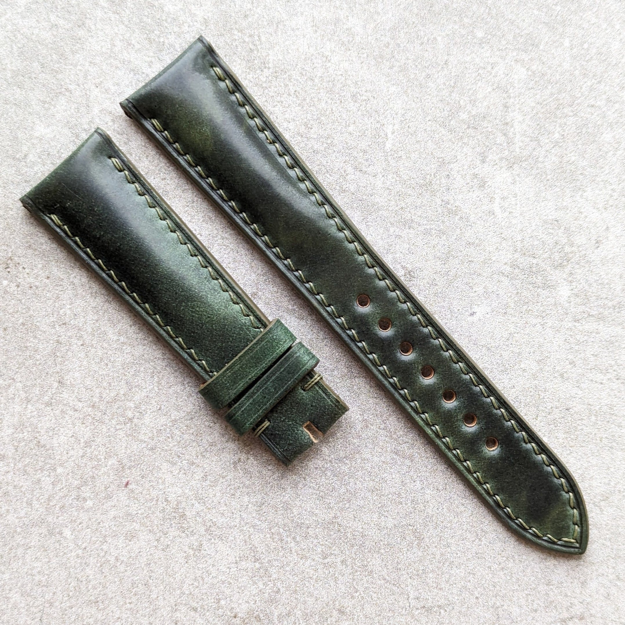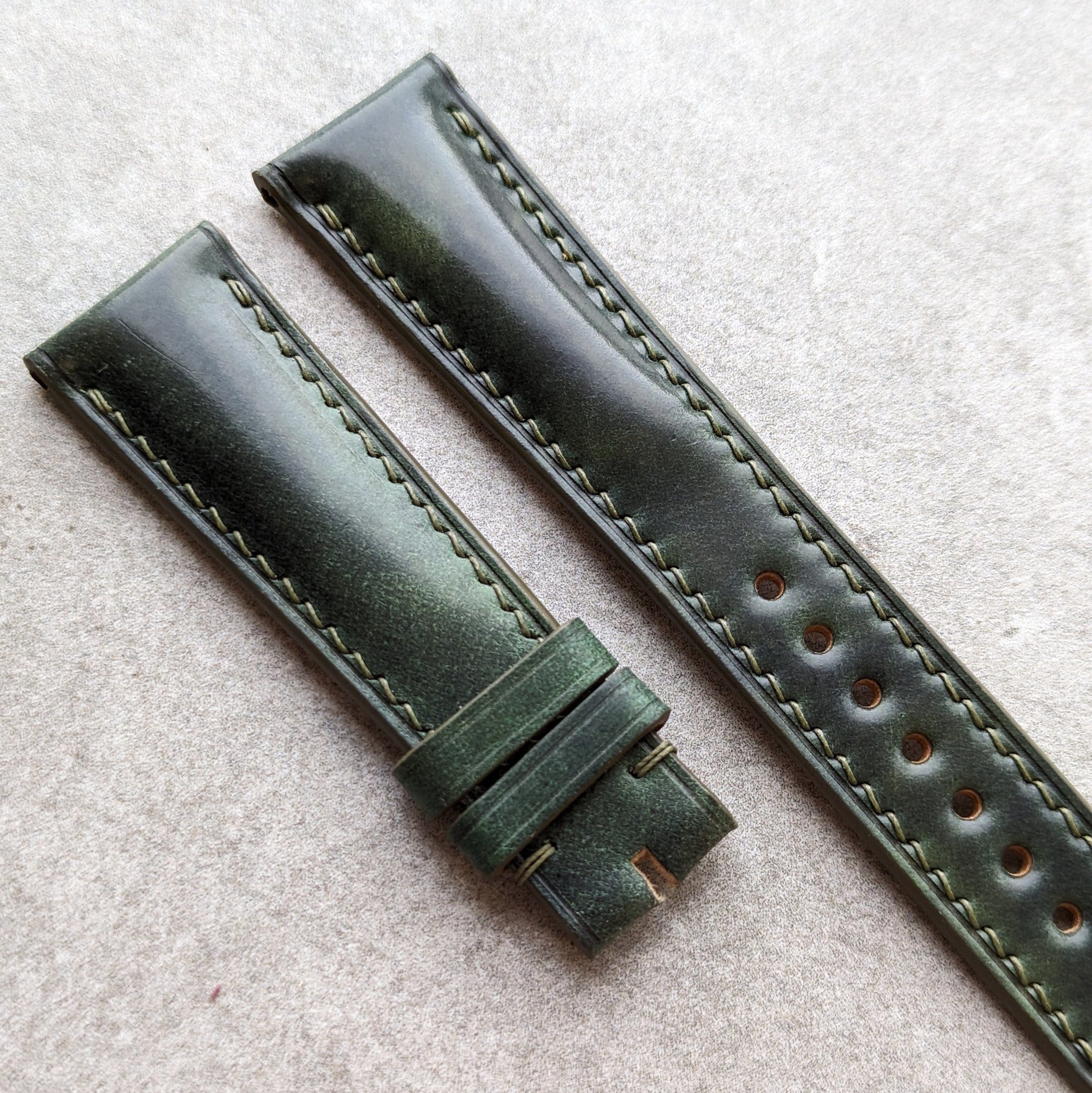 Shell Cordovan Watch Strap - Green Padded Marbled Museum