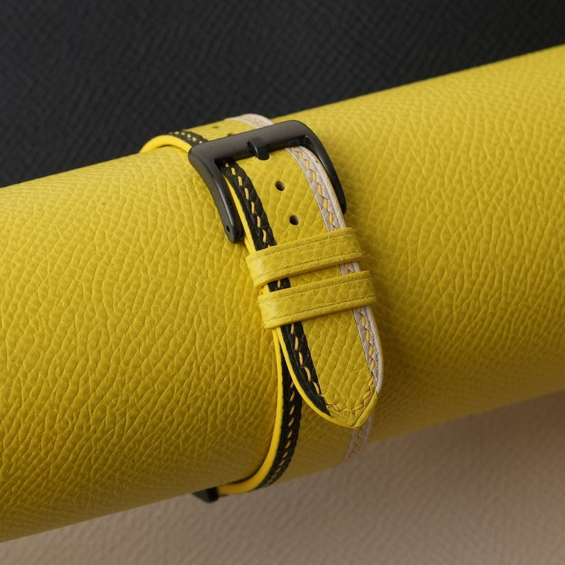 Tricolor Yellow Epsom Leather Watch Strap ,Tricolor Yellow Epsom Handmade Watch Strap, Epsom Strap Watch 16mm 18mm 19mm 20mm 21mm
