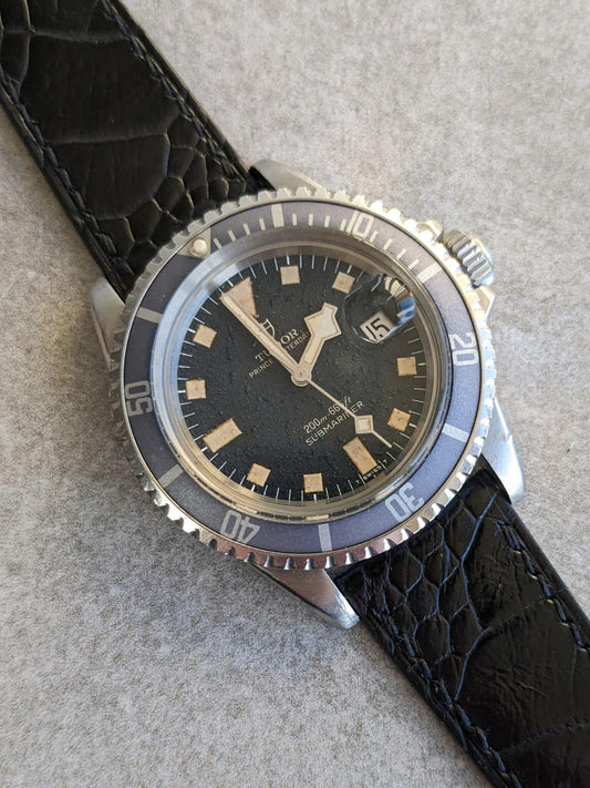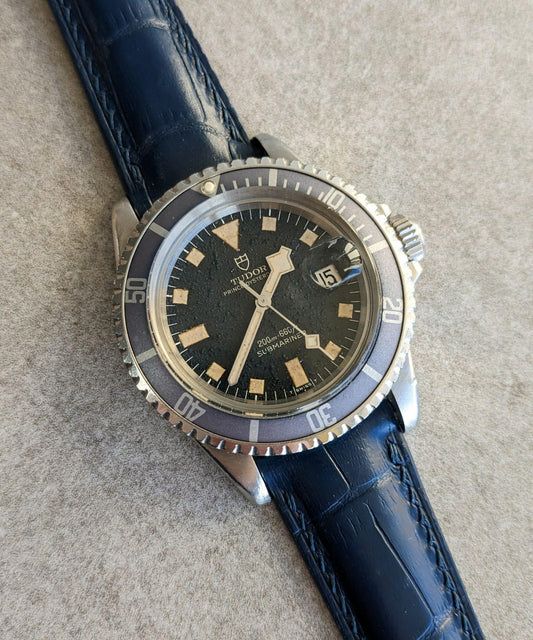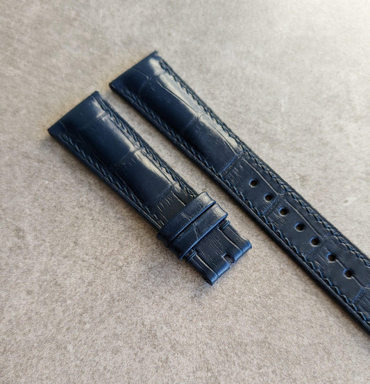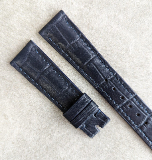 Embossed Crocodile Watch Strap - Navy Blue