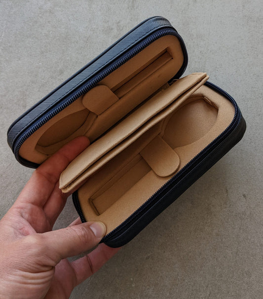 Navy Blue & Camel Travel Case - 2 Watch Zip Case