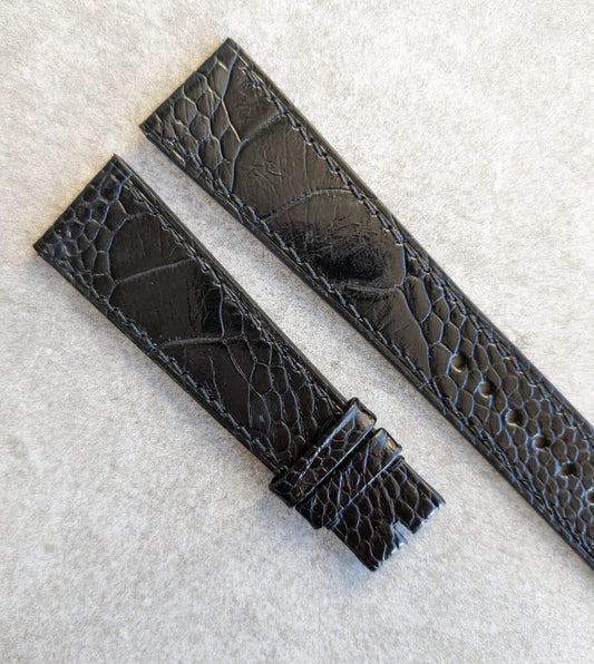 Ostrich Shin Flat Watch Strap - Black