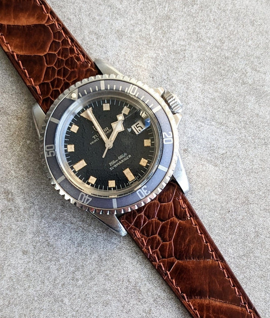 Embossed Crocodile Watch Strap - Dark Brown