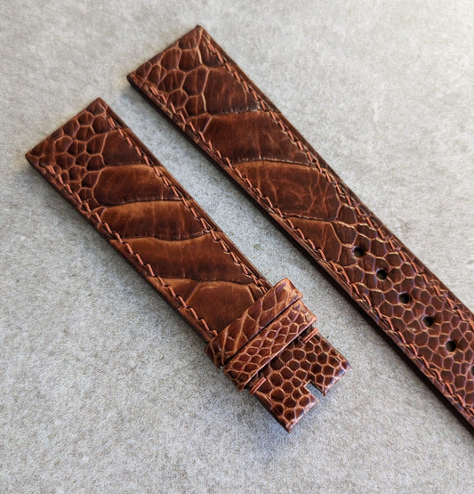 Ostrich Shin Flat Watch Strap - Cognac