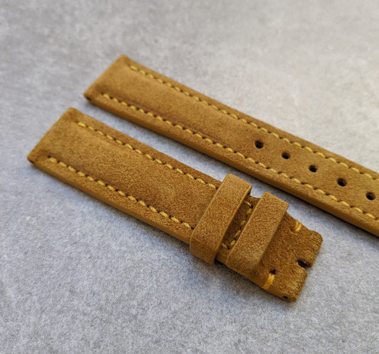 Padded Suede Leather Watch Strap - Mustard