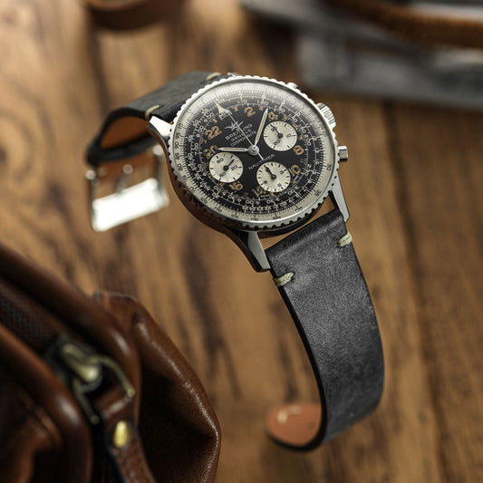 Vintage Stitching Patina Leather Watch Strap - Blue Jeans