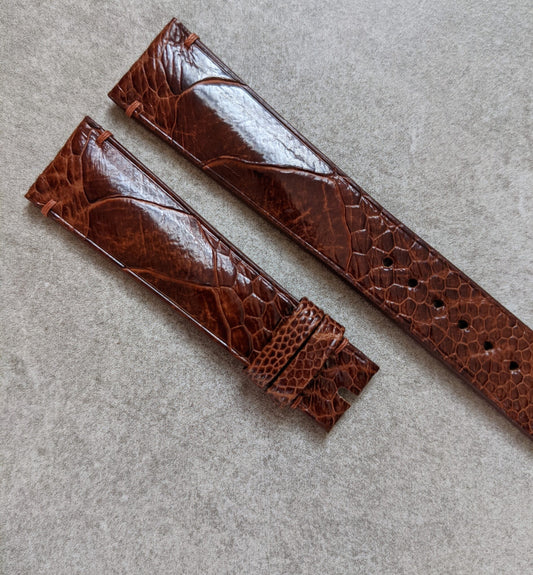 Ostrich Shin Watch Strap - Minimal Stitch - Cognac