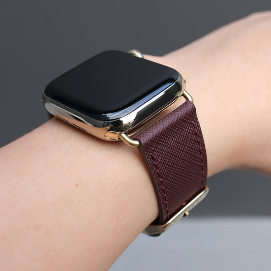 Saffiano Leather Apple Watch Band - Bordeaux