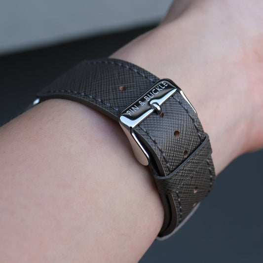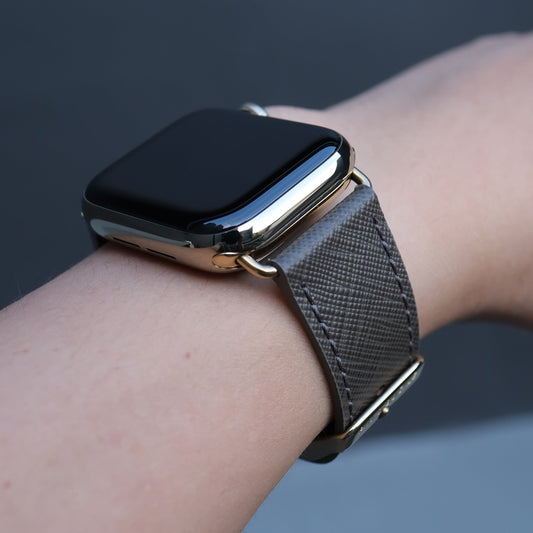 Saffiano Leather Apple Watch Band - Medium Grey
