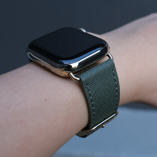 Saffiano Leather Apple Watch Band - Oak Green