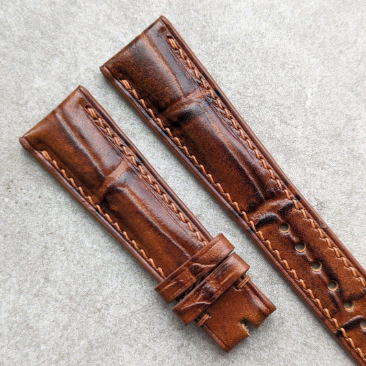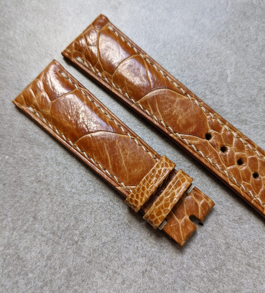 Ostrich Shin Watch Strap - Honey Brown W/Cream stitching