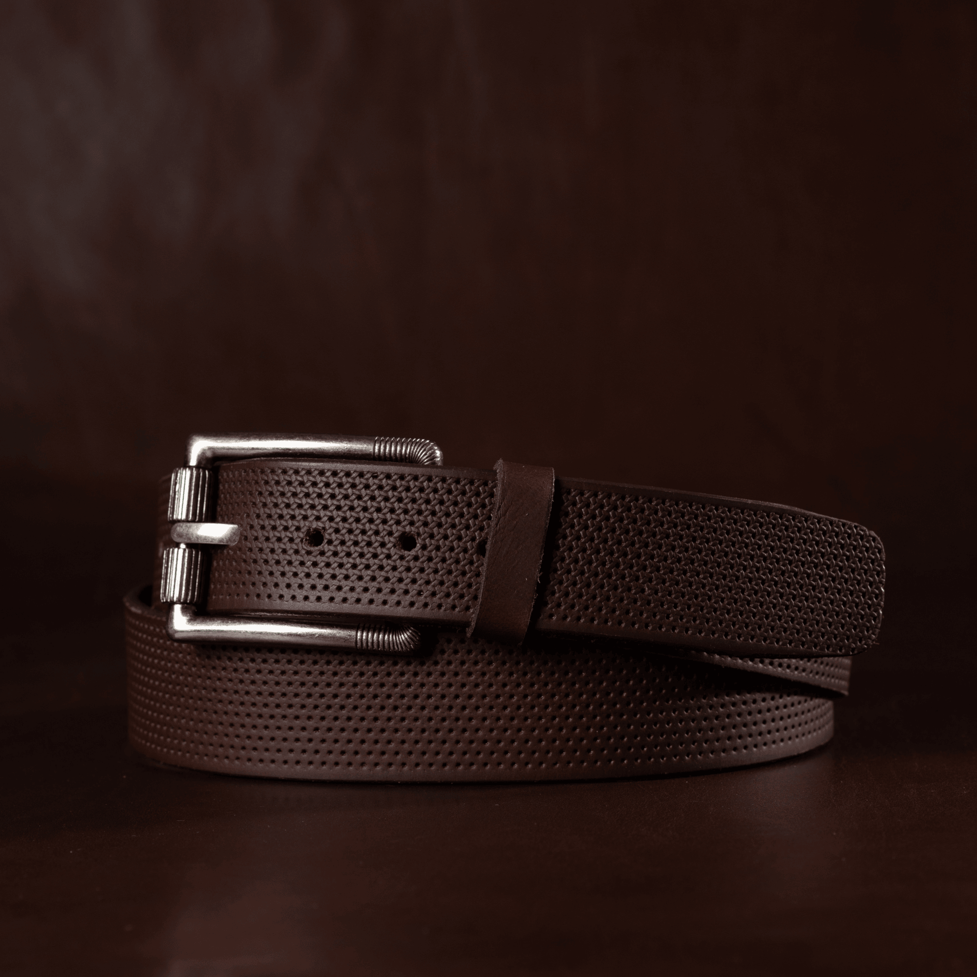One solid piece of leather. No bonded belts, period. This results in a belt that minimizes stretch and will never break or crack at the holes. The tough full grain leather is taken from the hide and handcrafted into a belt that you'll pass down to your kids.