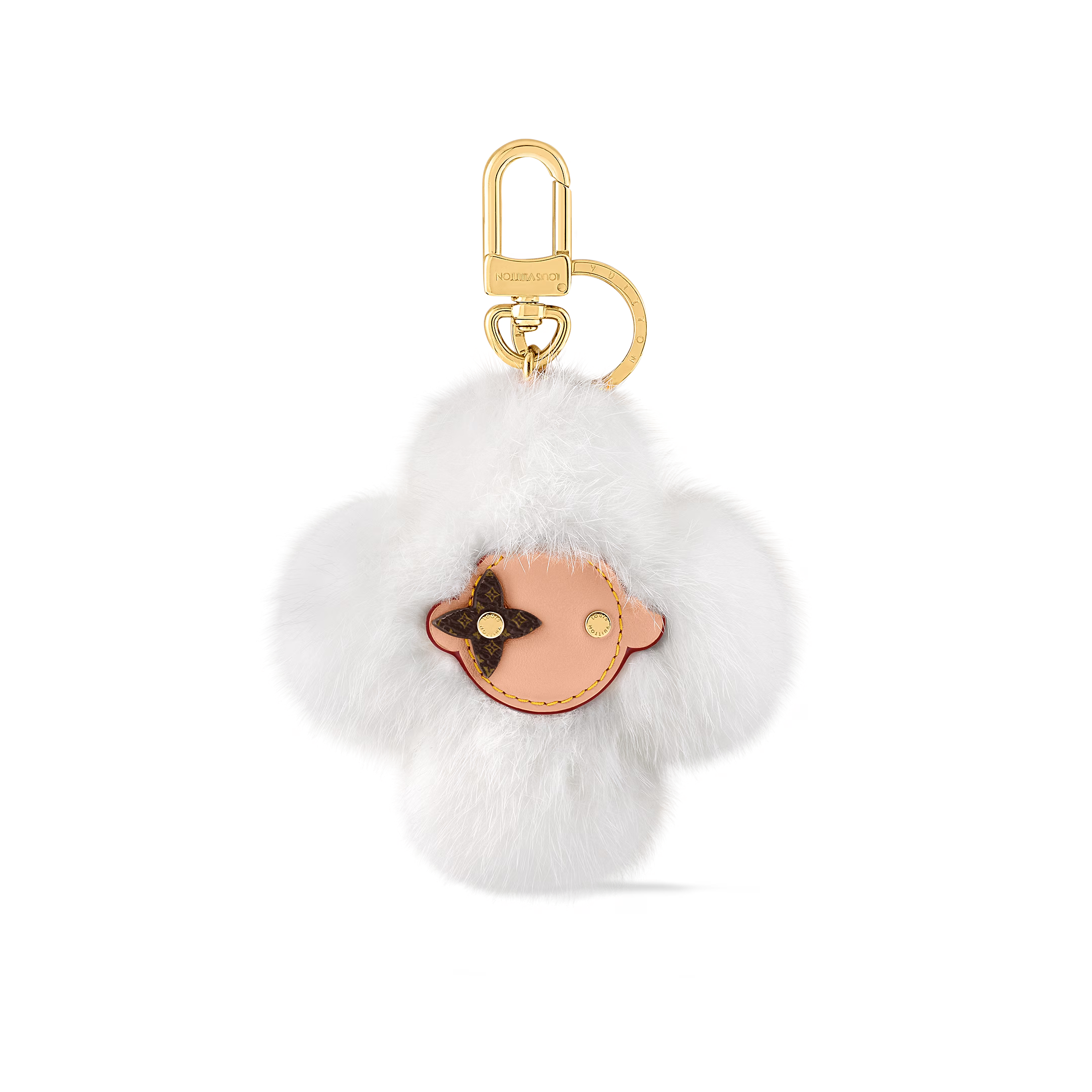 Vivienne's adorable face is crafted from leather, surrounded by soft mink fur and adorned with classic Monogram flower eyes.