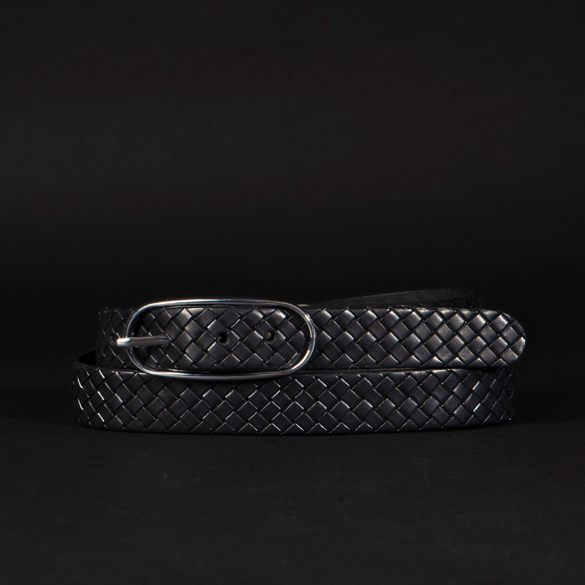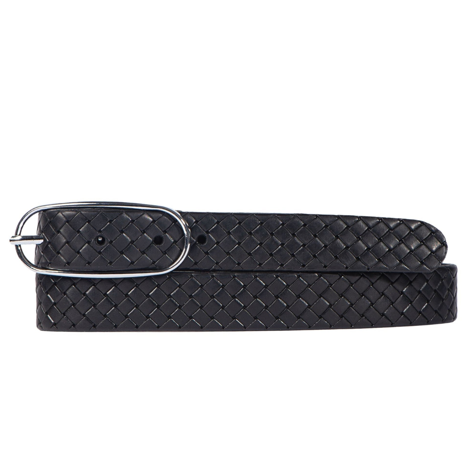 Aika - Black Braided Embossed Leather Belt with Oval Buckle - Made in Canada