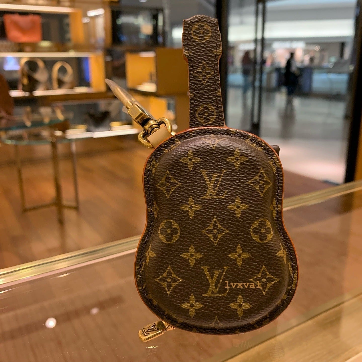 Crafted in Monogram-embossed leather, this creative design takes the form of a miniature guitar, blending music and fashion in perfect harmony. Finished with a polished gold-tone clasp engraved with special signature, it can be used both as a decorative charm on a bag or a refined key holder. A collector’s piece that strikes a stylish chord.