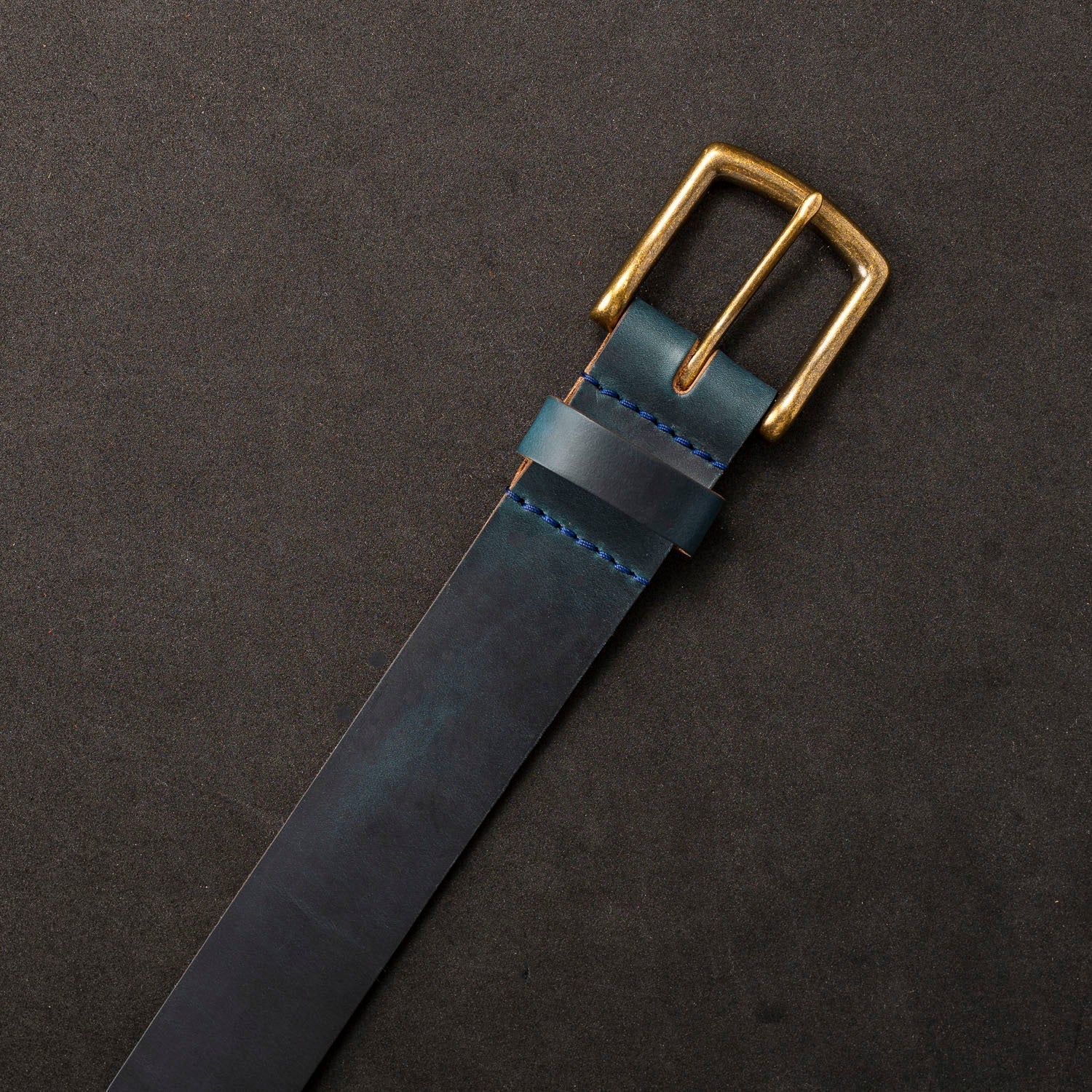 Sizing: Order 2" larger than your jean size. Worn casually or hard at work, Ashland's Horween Leather Belt is the most comfortable, durable and long-lasting belt you'll ever own. A single layer of 1.5" wide Horween leather, accented with simple, tasteful detailing like seven tear-drop adjustment holes, a solid brass buckle, double-stitched and coated with resin to stay strong and comfortable forever.