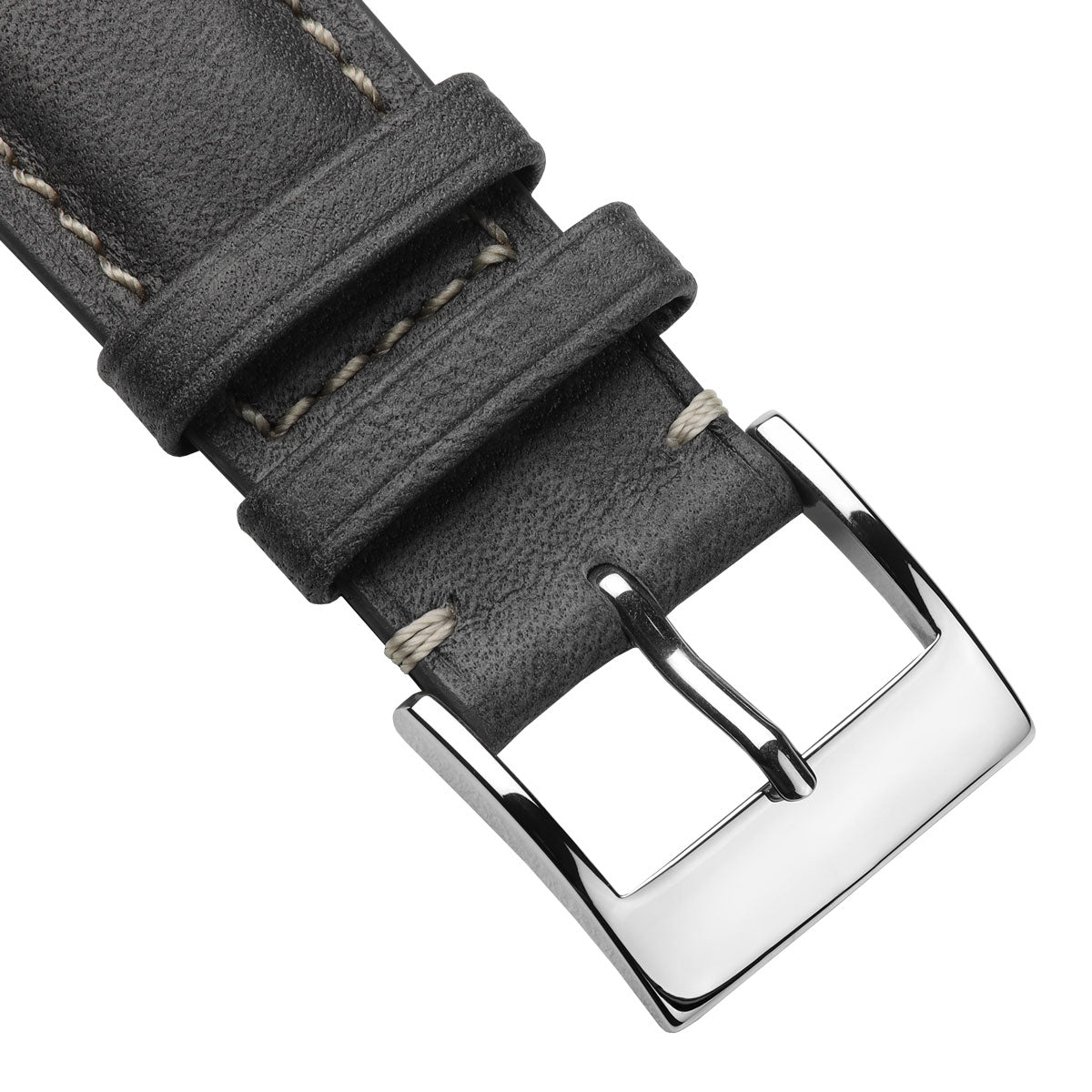 This watch strap is available in several lug widths and features a robust stainless-steel buckle with a highly polished finish.
