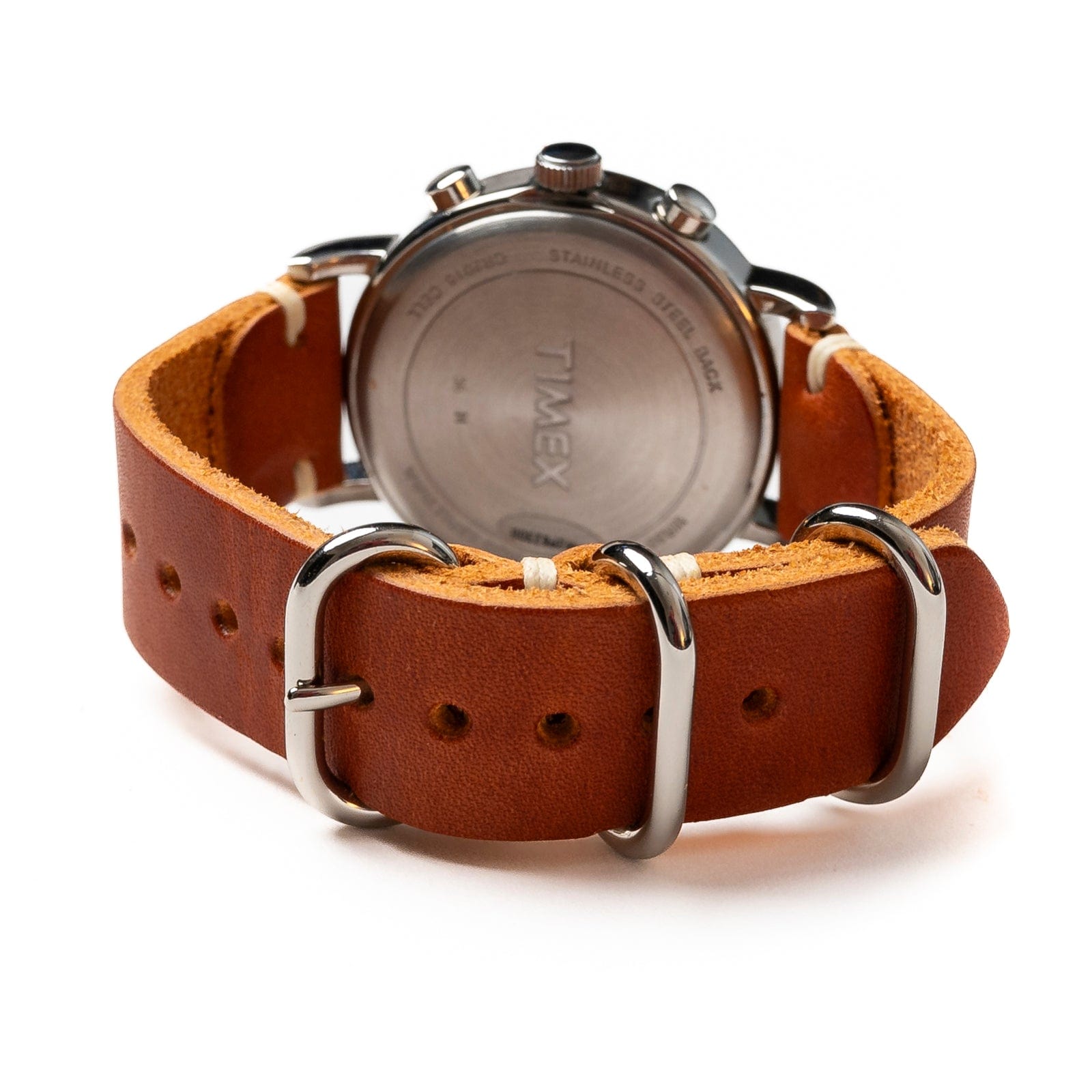 With an average-size timepiece, straps are designed to fit wrist circumference between 6" and 8.5". We measured our straps using the Timex Weekender pictured.