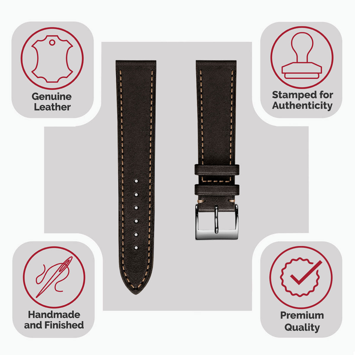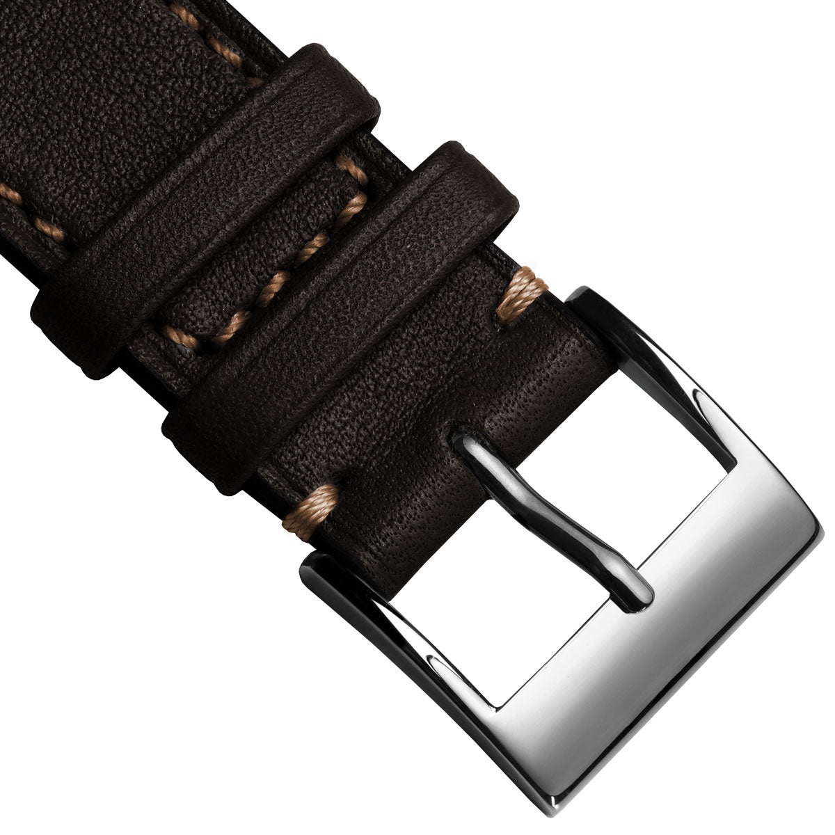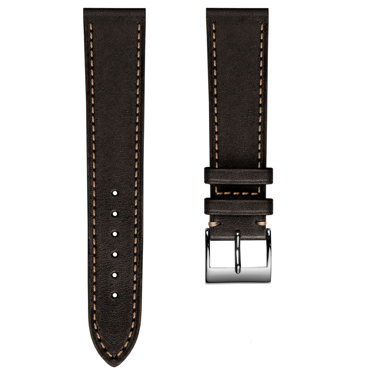 The handstitched edge of the Leuven strap has been expertly executed using contrasting thread and is hand-painted with a colour stain to match the leather. This watch strap is available in various lug widths and features a robust stainless-steel buckle with a highly polished finish.