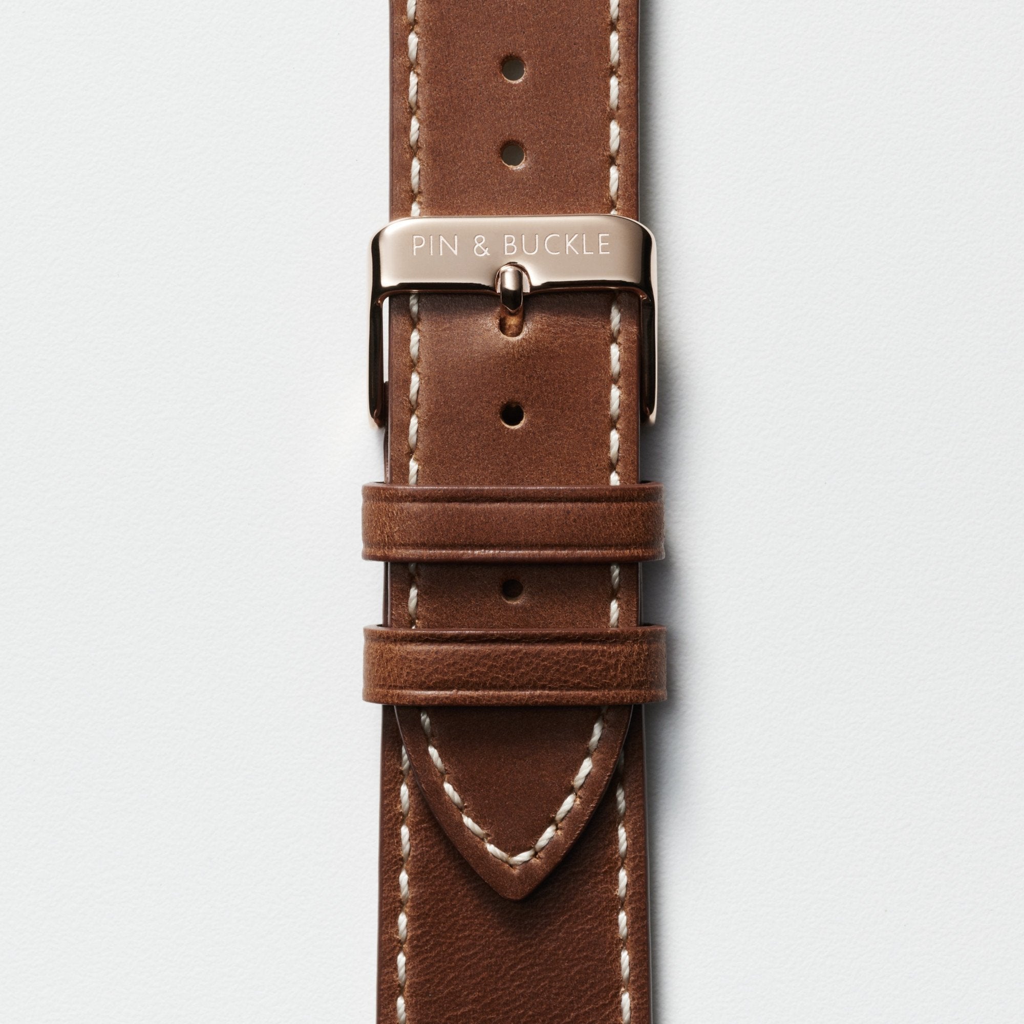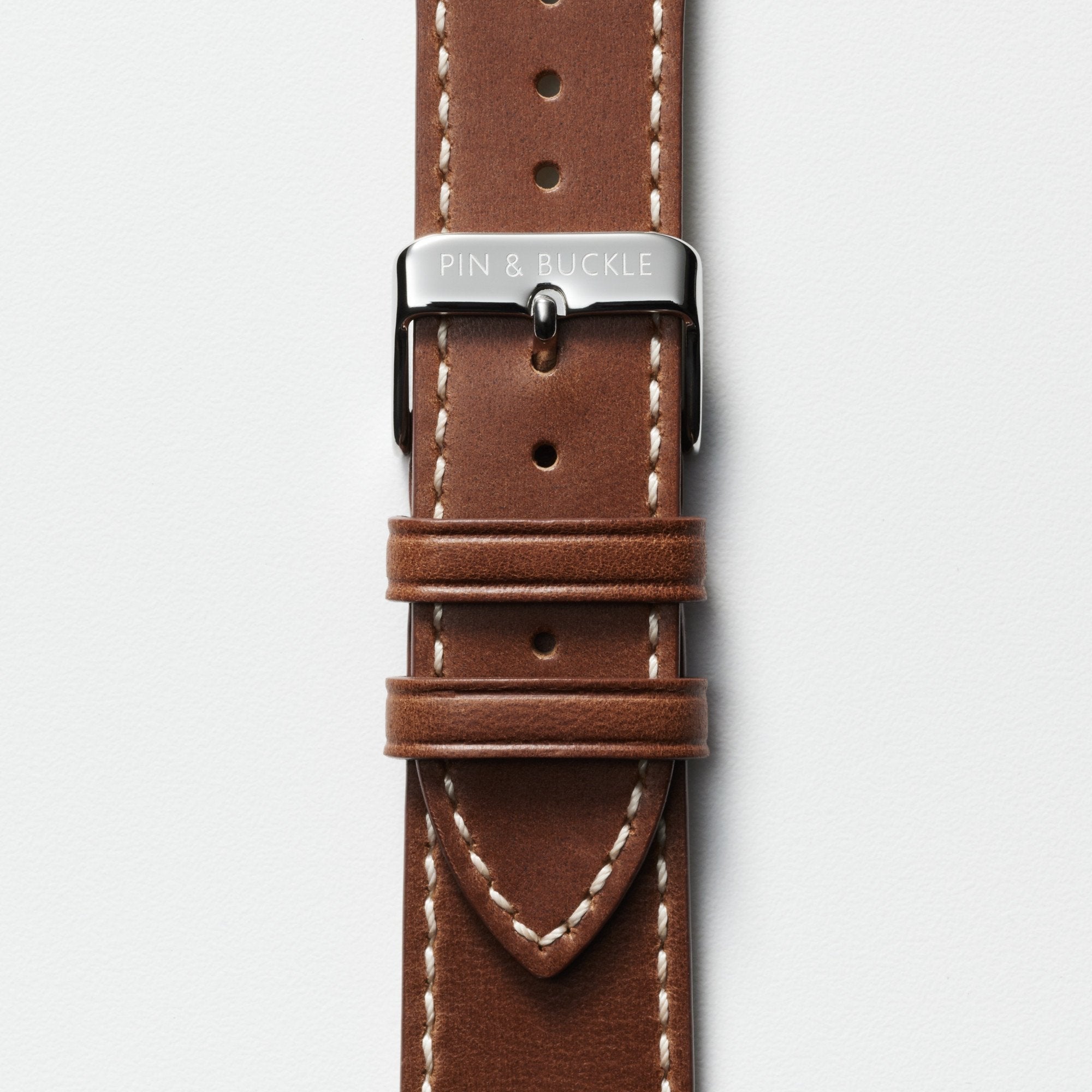 Invitingly warm with hickory undertones accentuated by creamy off-white stitching, our new Chestnut Brown leather Apple Watch band pairs effortlessly with all Apple Watches, and complements just about every outfit, making it the quintessential leather band in your collection.