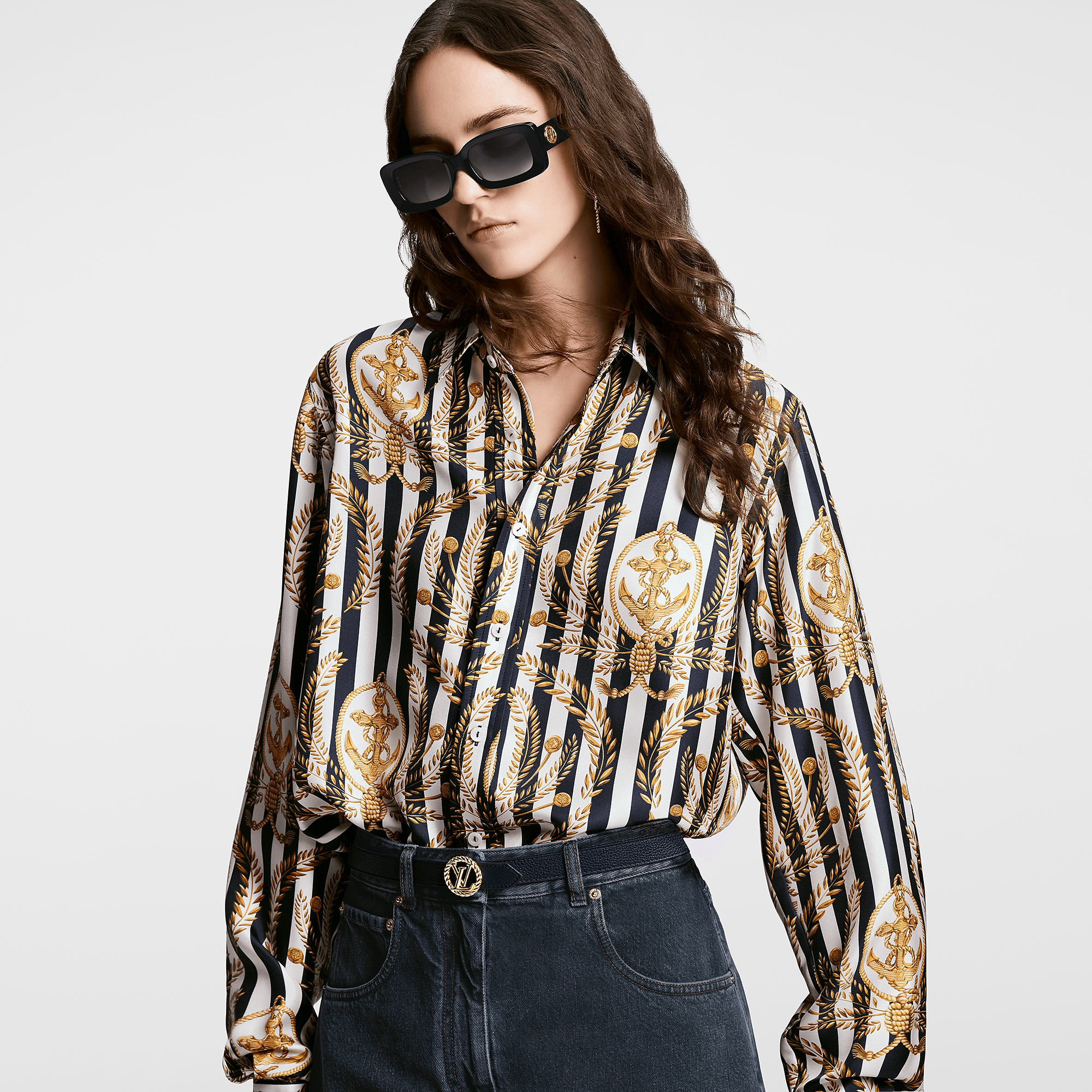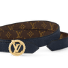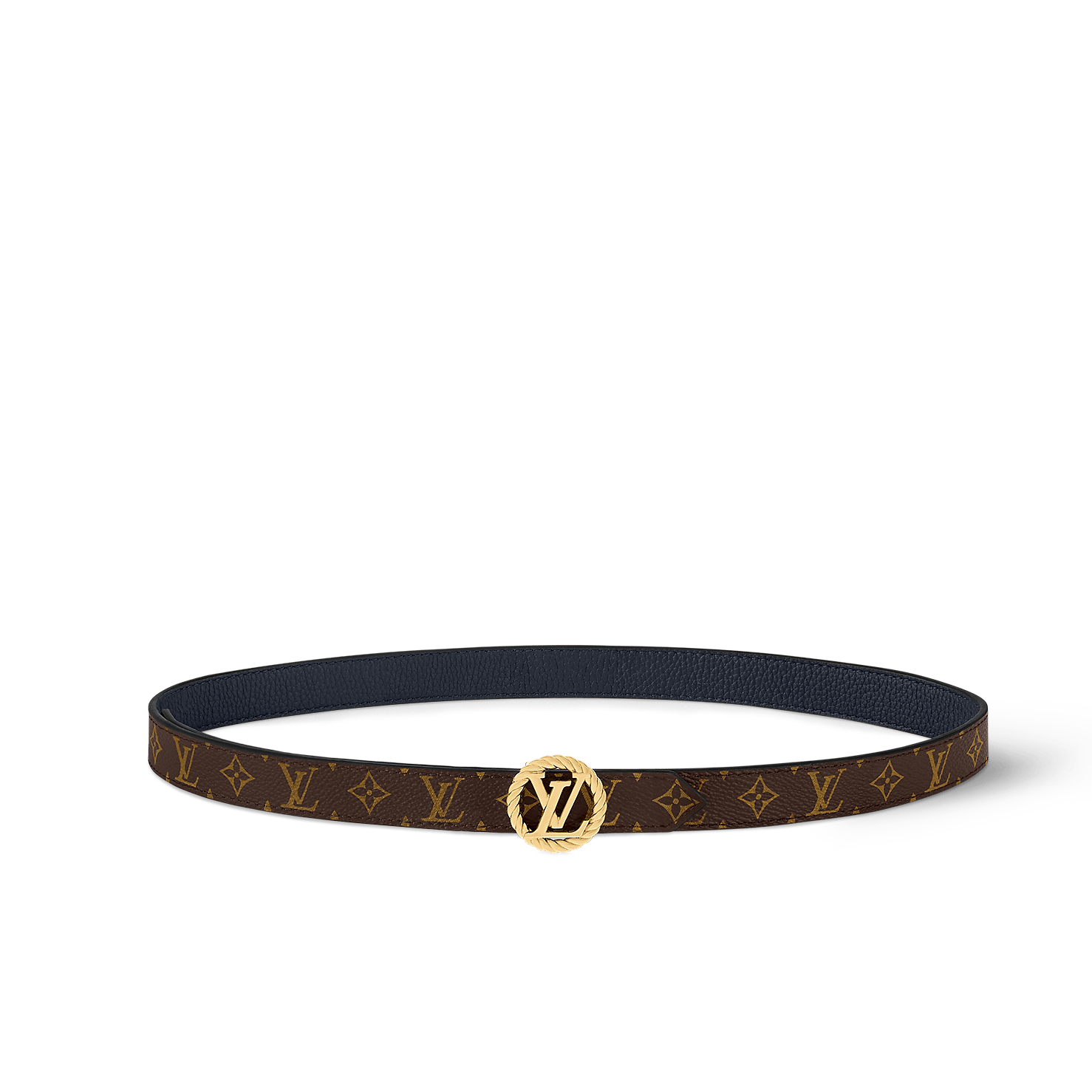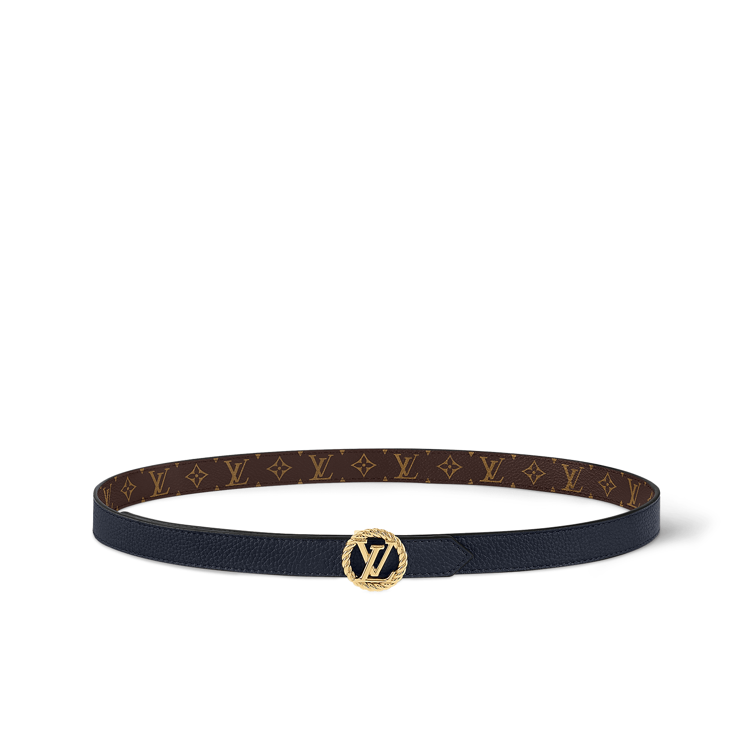 A classic House emblem gets a fresh interpretation in the LV Circle Nautical 20mm Reversible Belt. Offering a choice of fine grained leather or Monogram canvas, its slim strap contrasts with a gold-tone metal buckle featuring the LV signature inside a circle styled after a sailor’s rope. A sophisticated, feminine belt infused with the timeless elegance of the nautical world.
