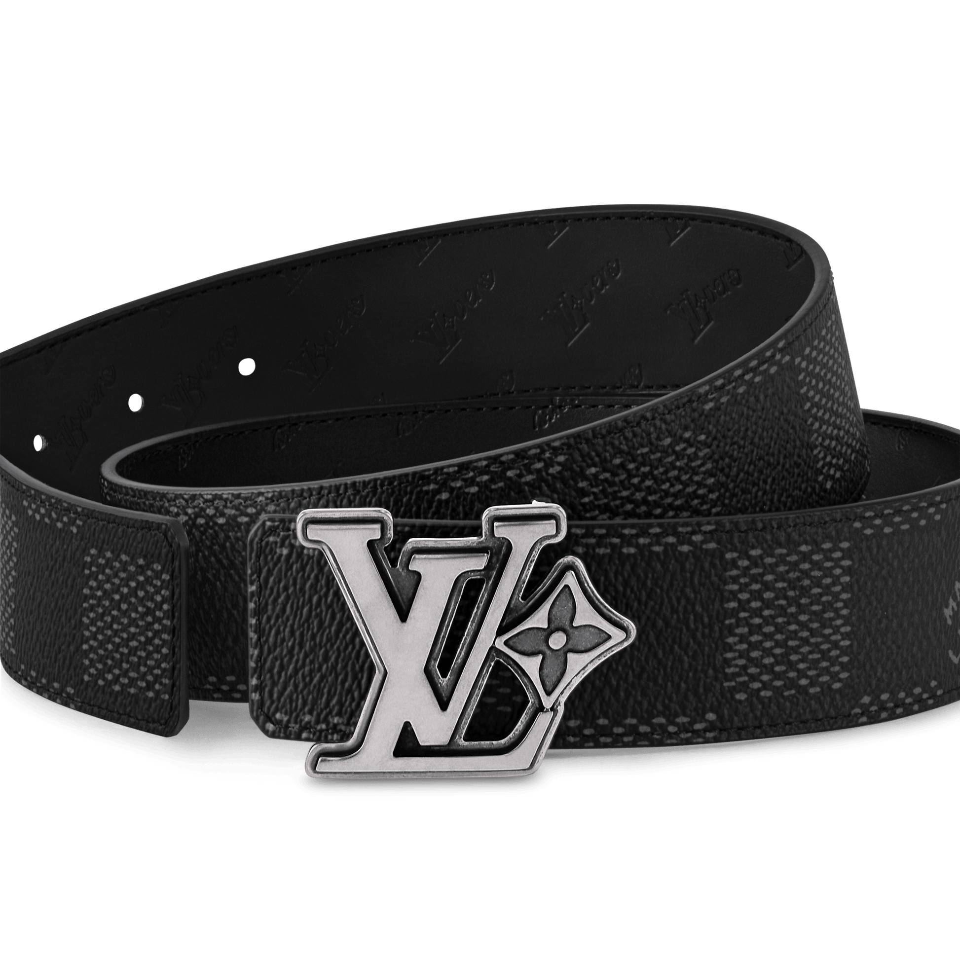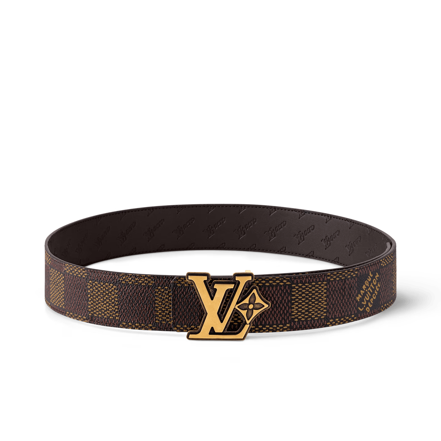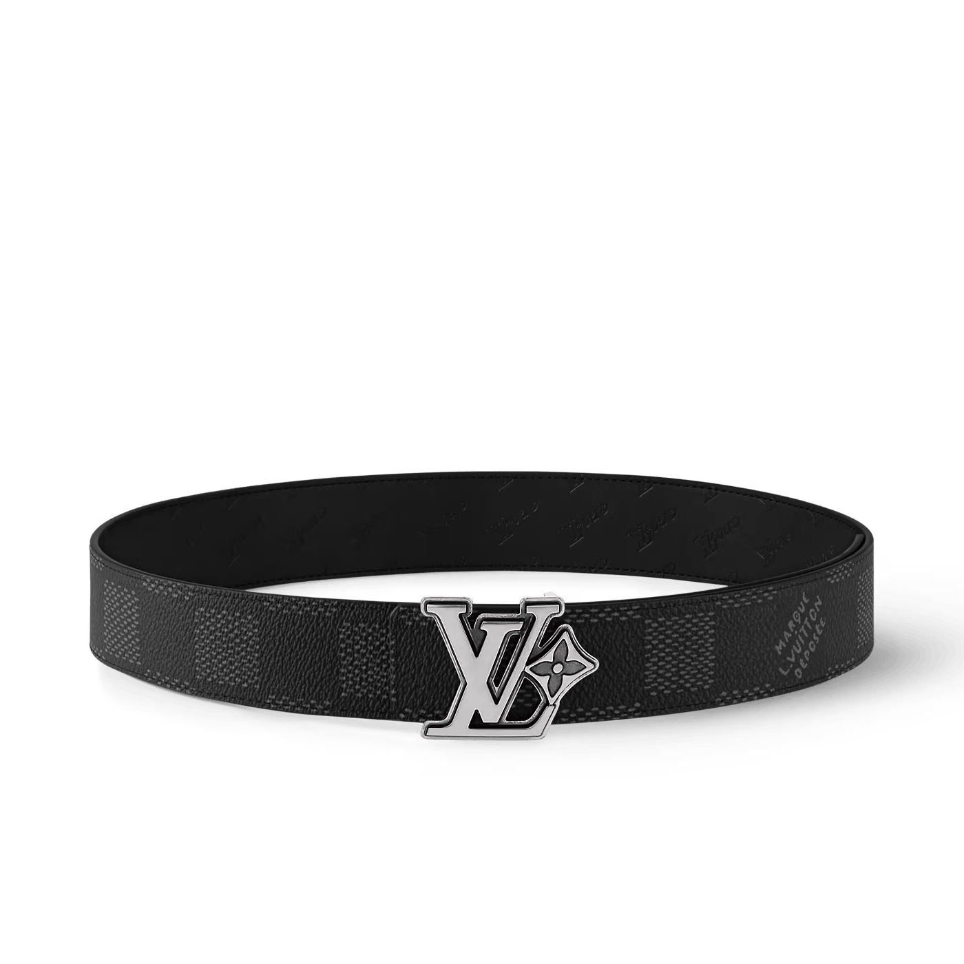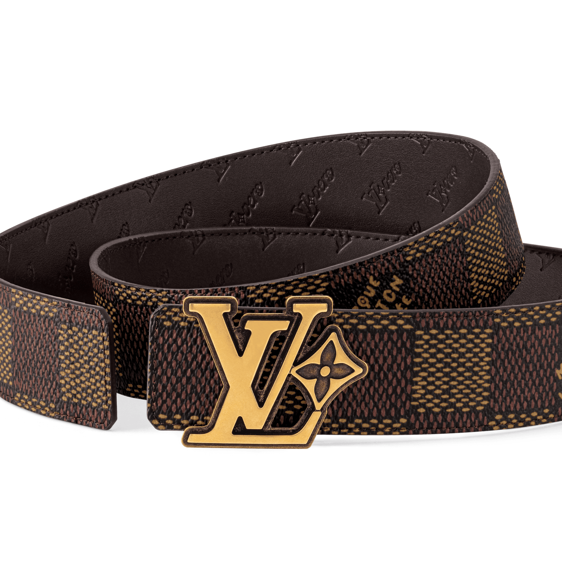 The LV Flower 40mm Reversible belt suffuses the House's time-honored elements with modernity. The canvas side is coated with the graphic Damier Héritage motif, interspersed with the "Marque Louis Vuitton Déposée" signature, and on the other, the LV Flower emblem is embossed on leather. Conspicuous in its size, the buckle is simply alluring, with chunky initials paired alongside a single flower.