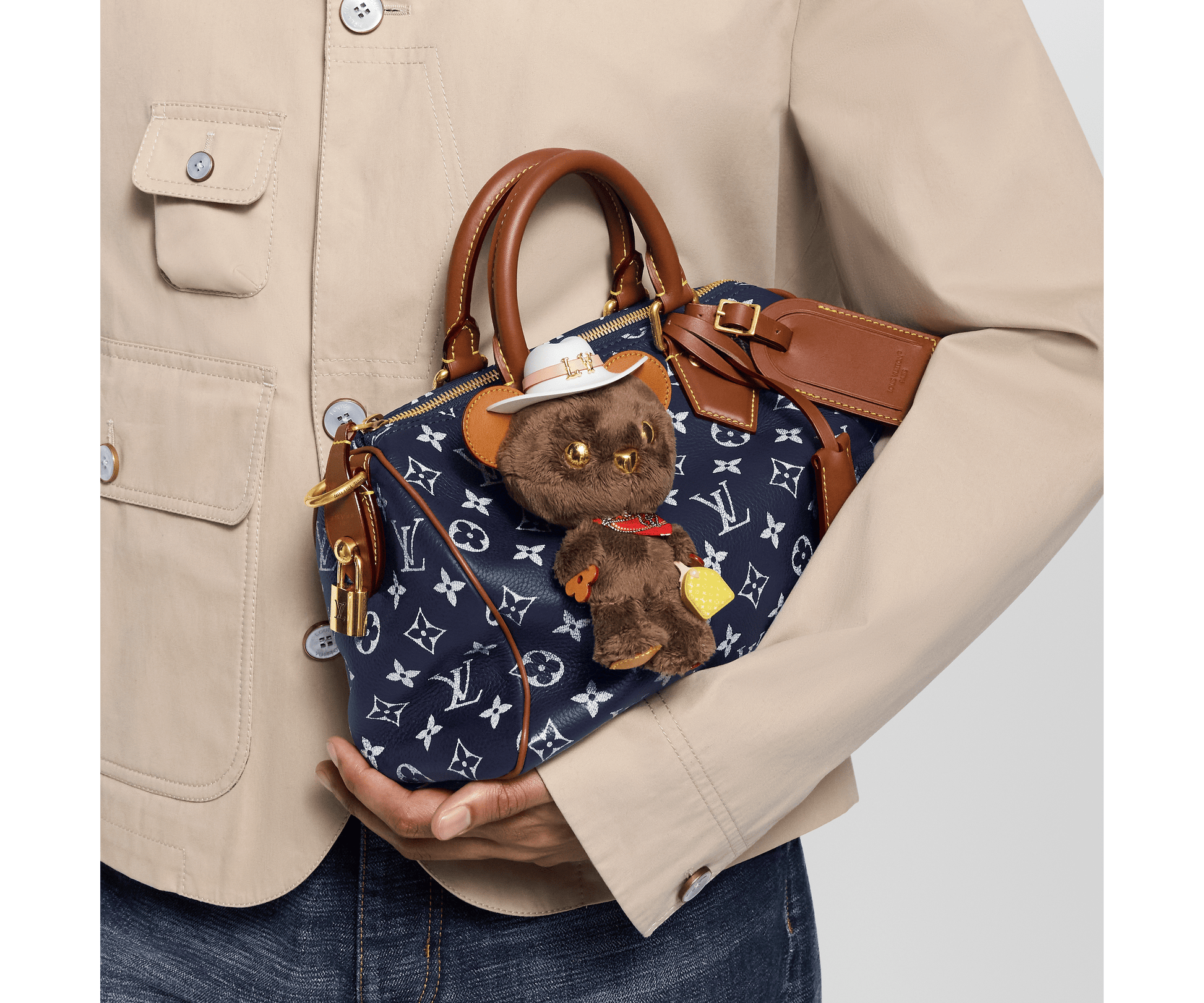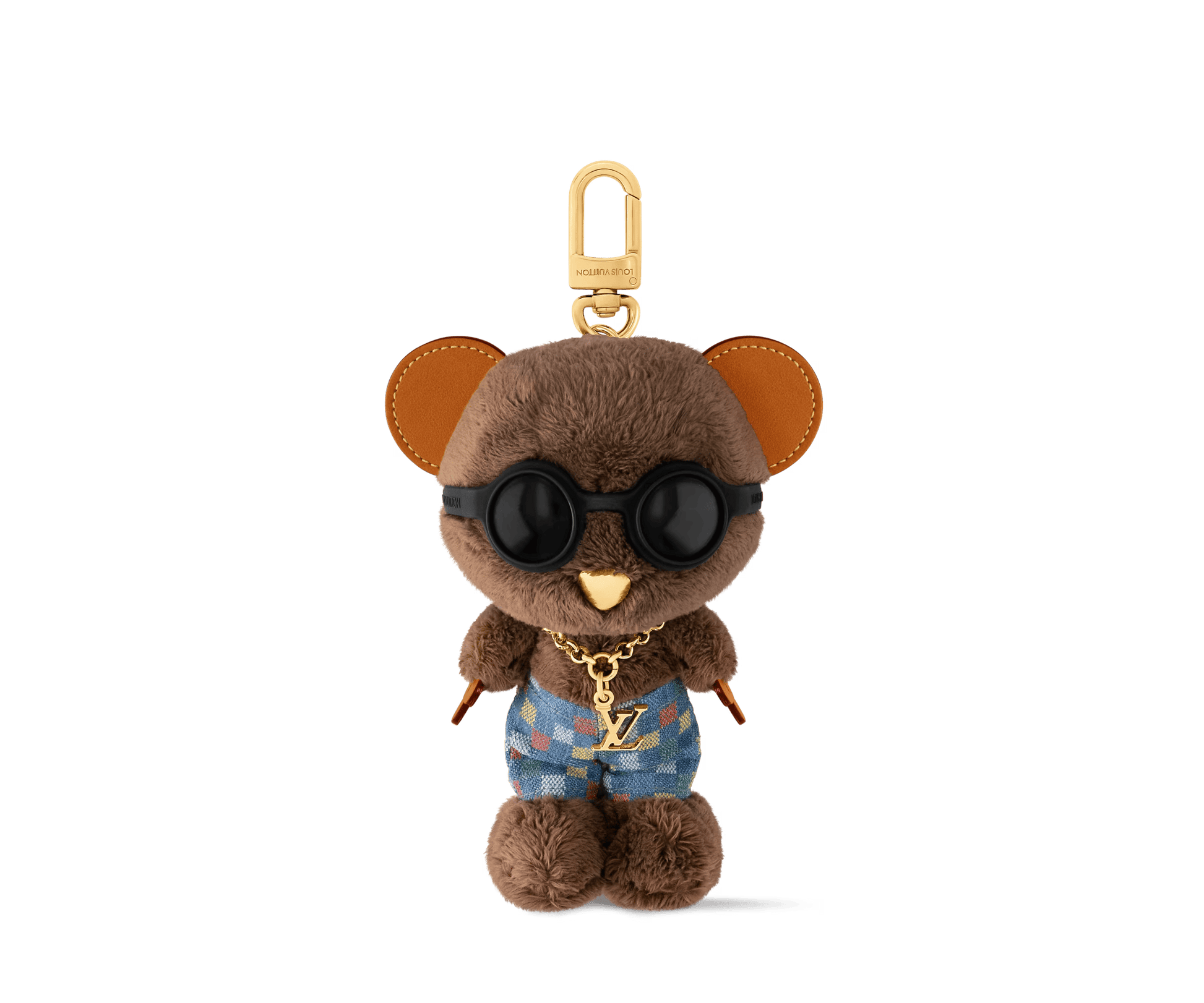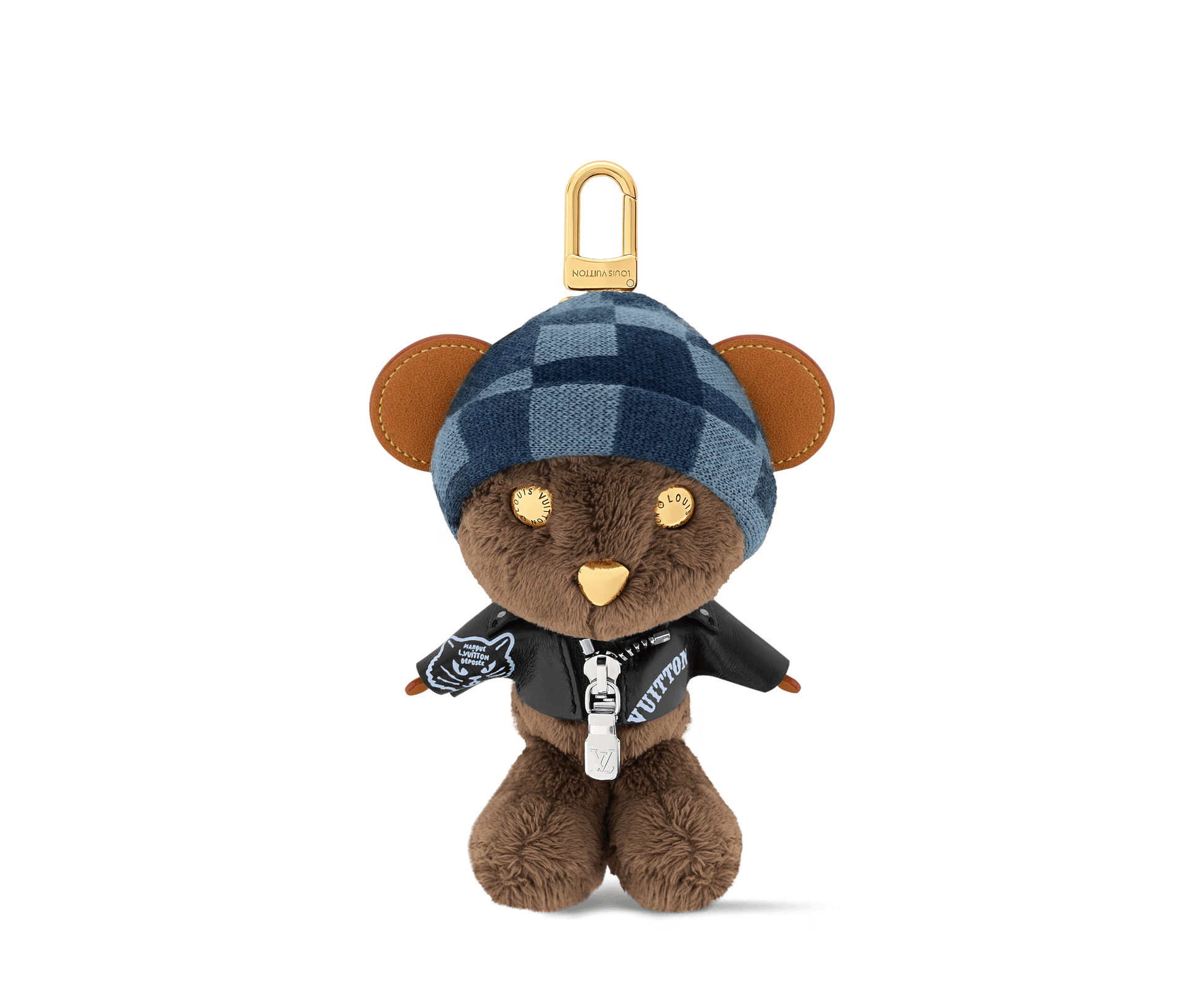 Available in four distinct looks, the LV Louis Bear Bag Charm is the perfect companion. The cute plush figurine embodies themes from Pharrell Williams' past runway shows: Baseball, Rockabilly, Western, and Super Vision. Each Louis' ensemble has his own personality and is sure to add intriguing flair to a beloved accessory or jeans. Please note the products are hand made. This is solely a bag accessory, and it must not be entrusted to children under the age of 14.