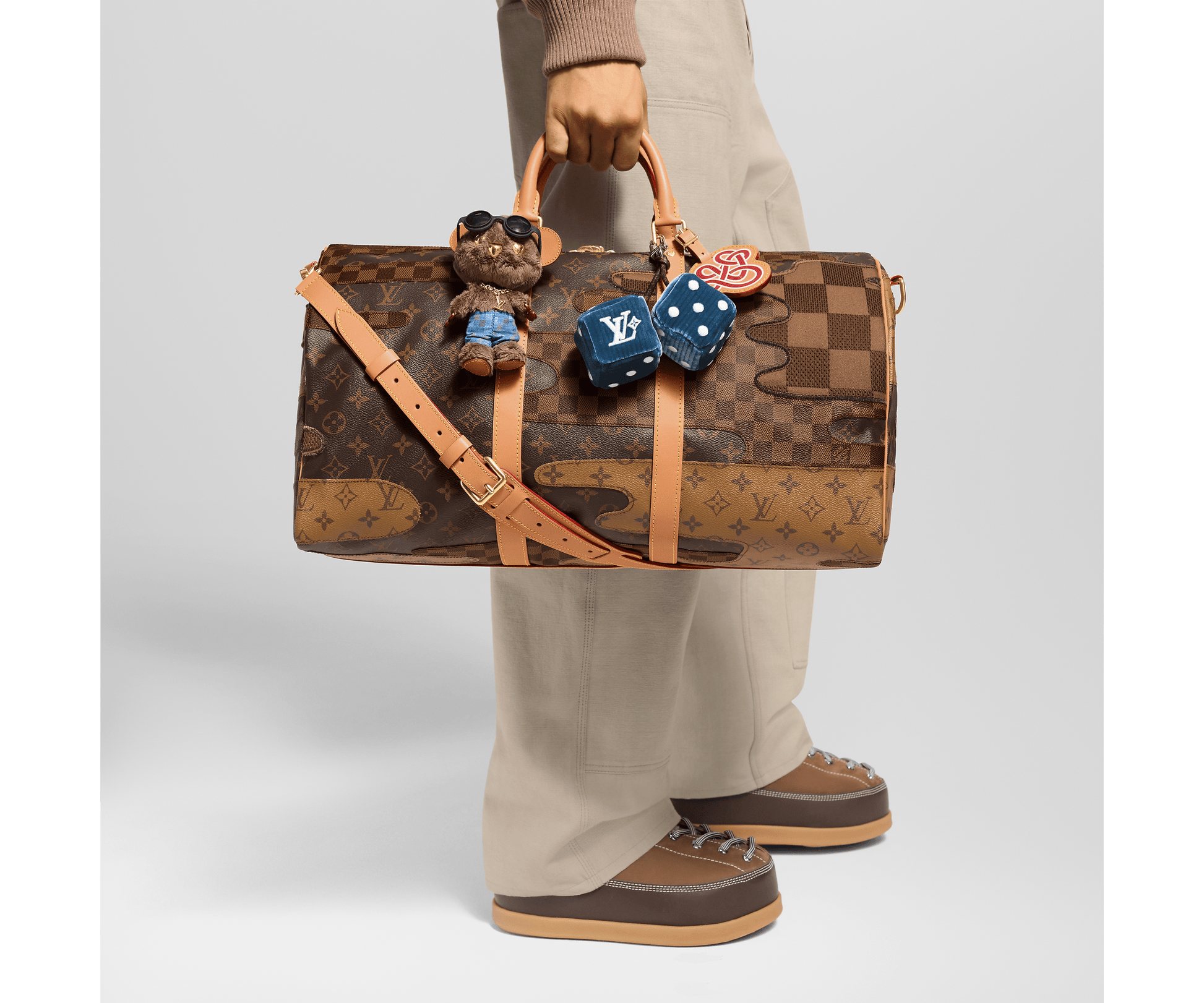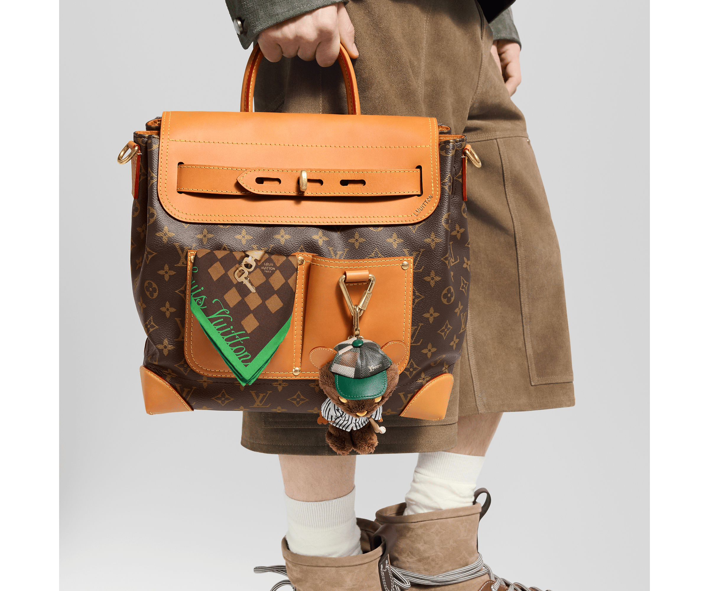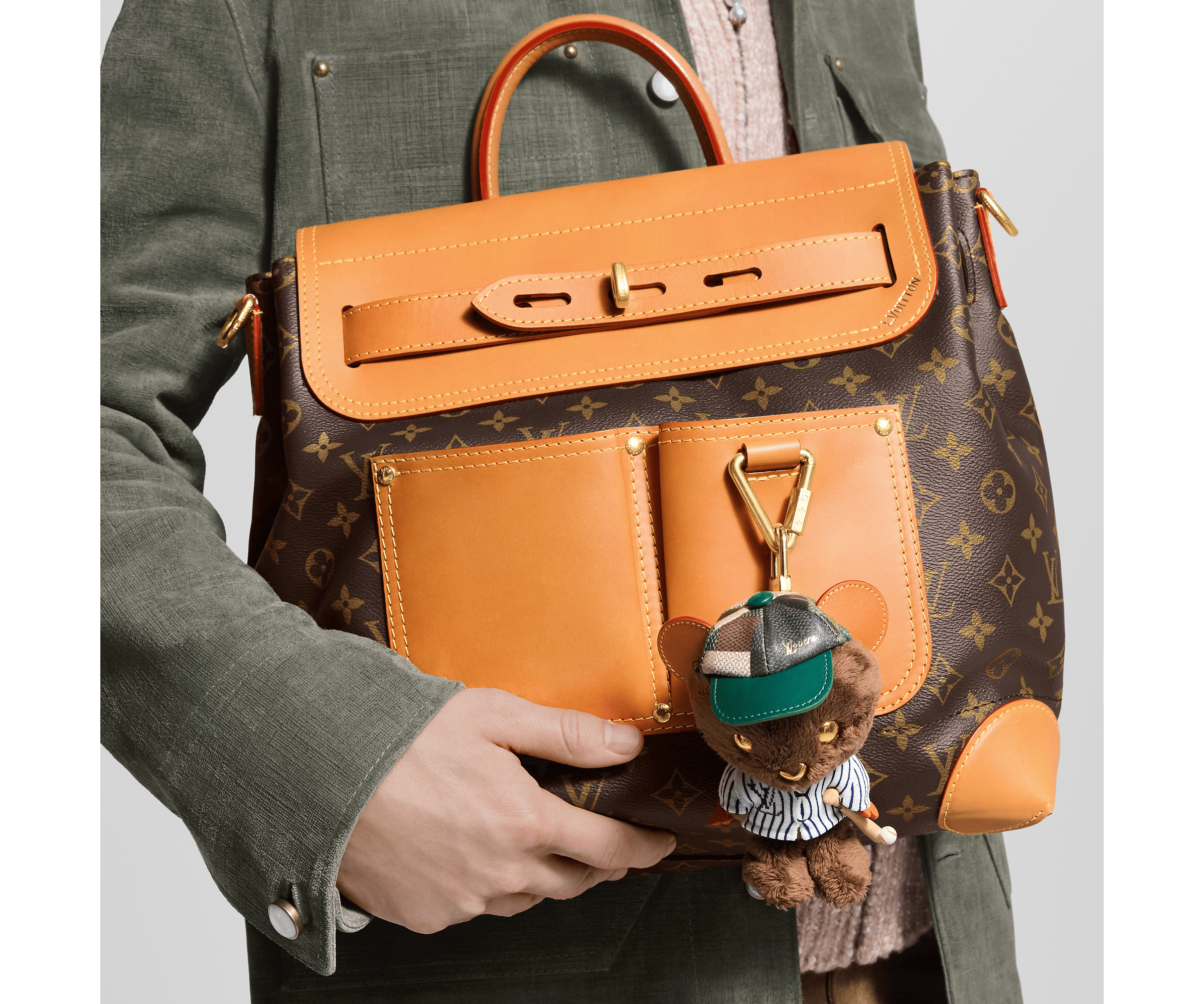 Available in four distinct looks, the LV Louis Bear Bag Charm is the perfect companion. The cute plush figurine embodies themes from Pharrell Williams' past runway shows: Baseball, Rockabilly, Western, and Super Vision. Each Louis' ensemble has his own personality and is sure to add intriguing flair to a beloved accessory or jeans. Please note the products are hand made. This is solely a bag accessory, and it must not be entrusted to children under the age of 14.