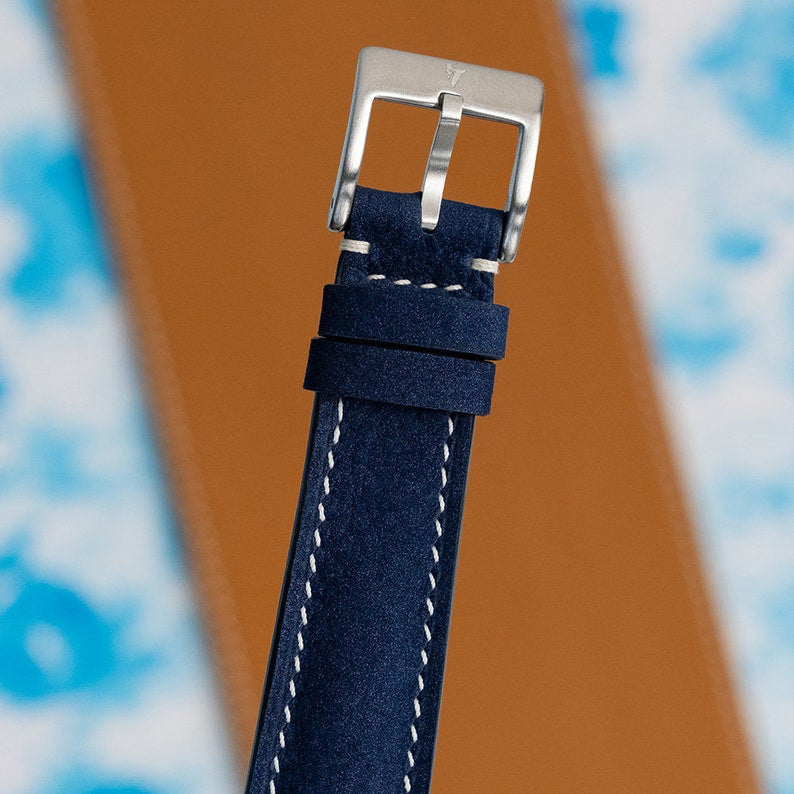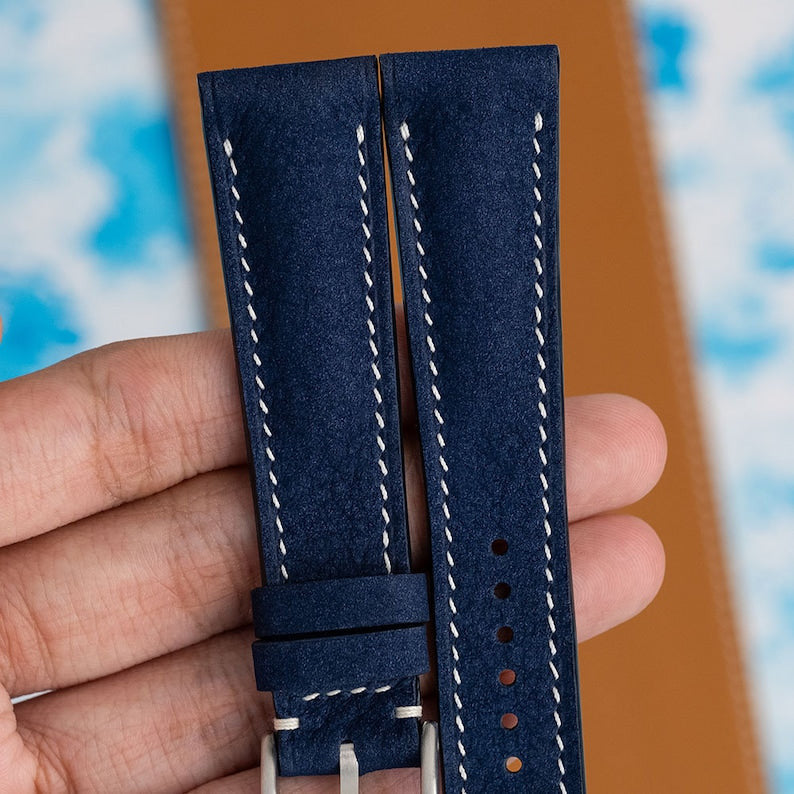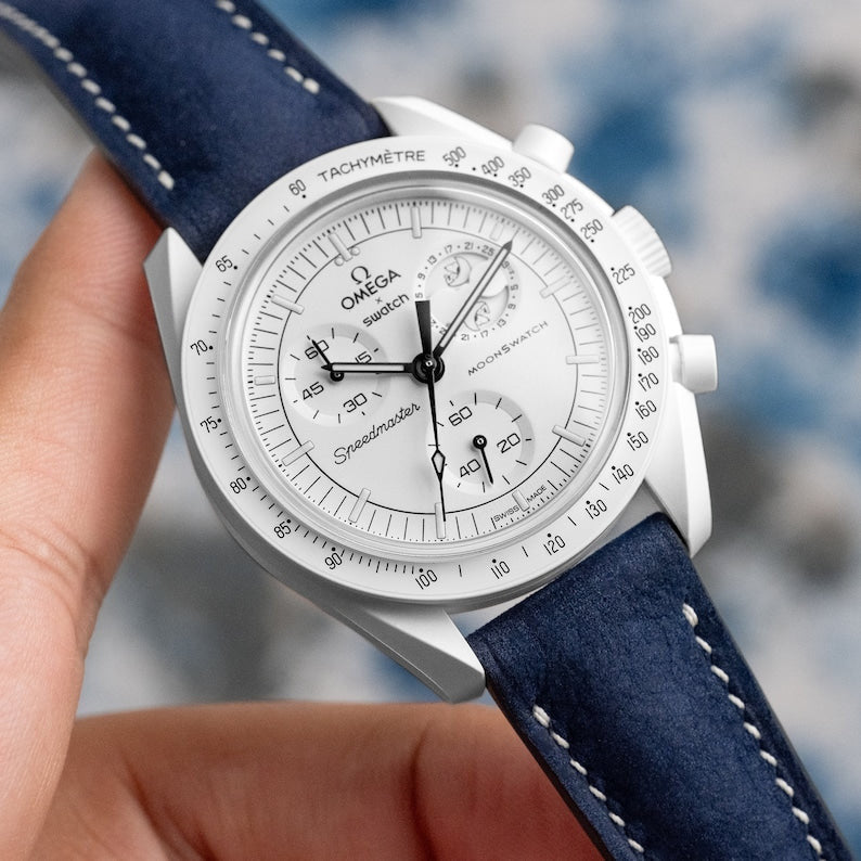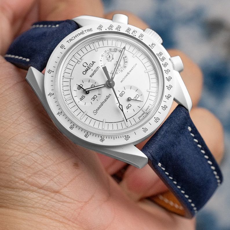 navy blue nubuck strap for moonswatch snoopy moonshine