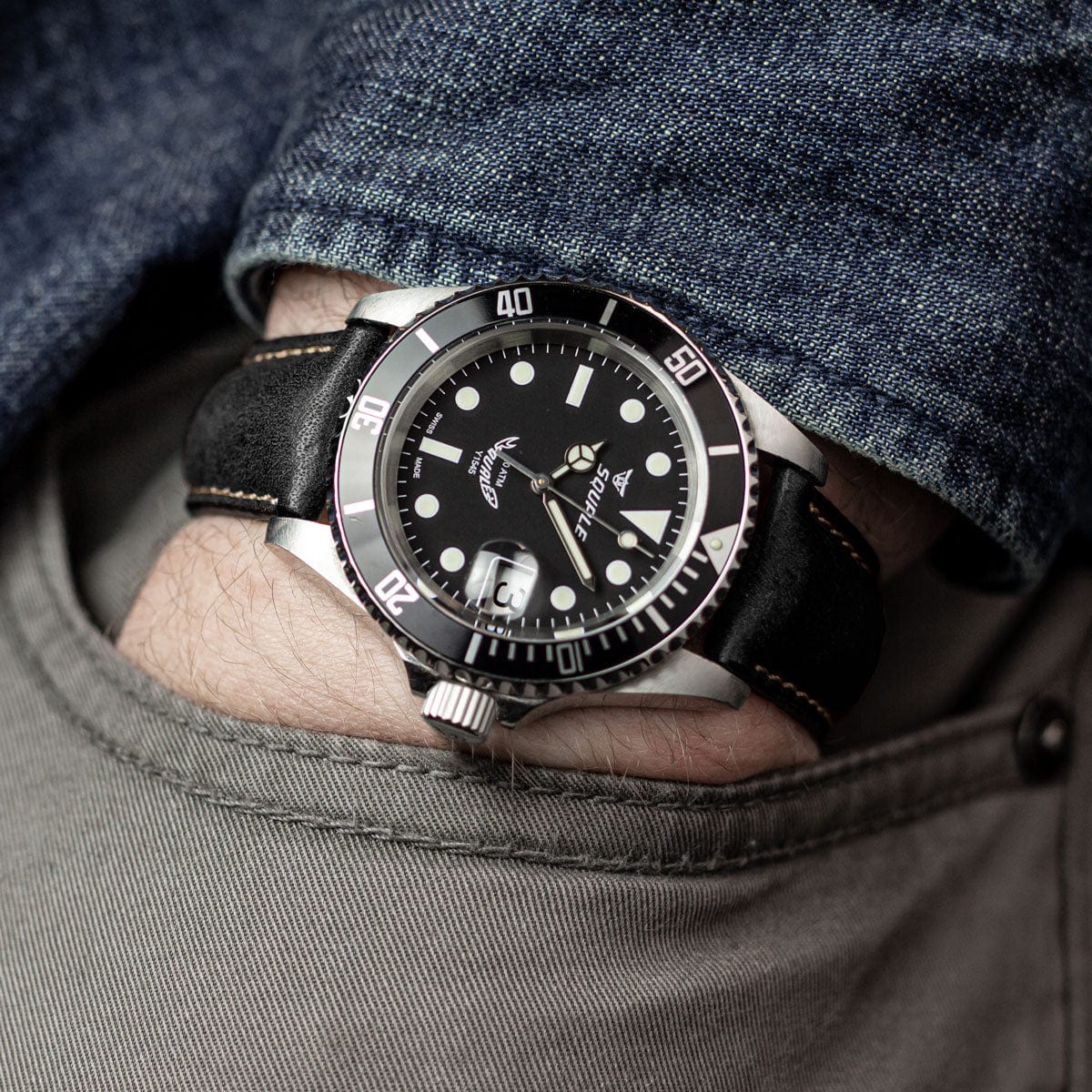 This is a generous strap in every way. It’s thickly padded (6mm thick at the lug end) and made from the very best Italian vegetable-tanned, full-grain leather. The supple pull-up leather is oiled and will age with grace, picking up patina as it’s worn.