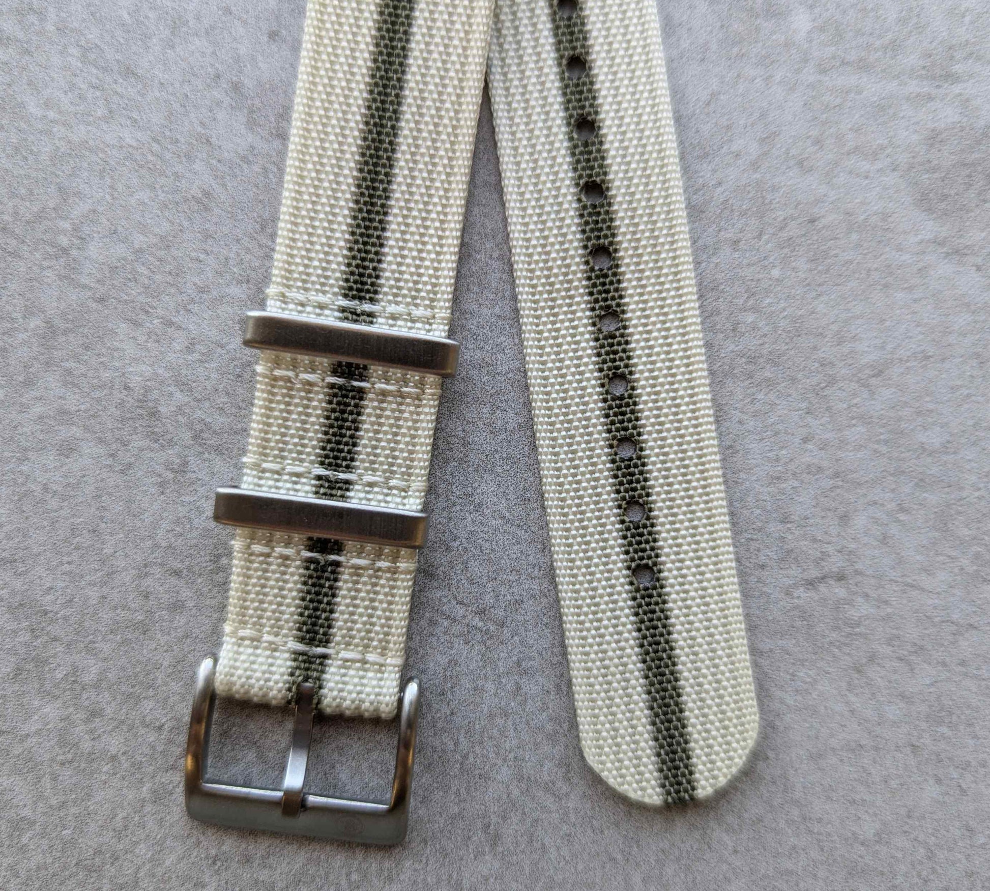 Premium Ribbed Fabric Watch Strap - Cream & Army Green