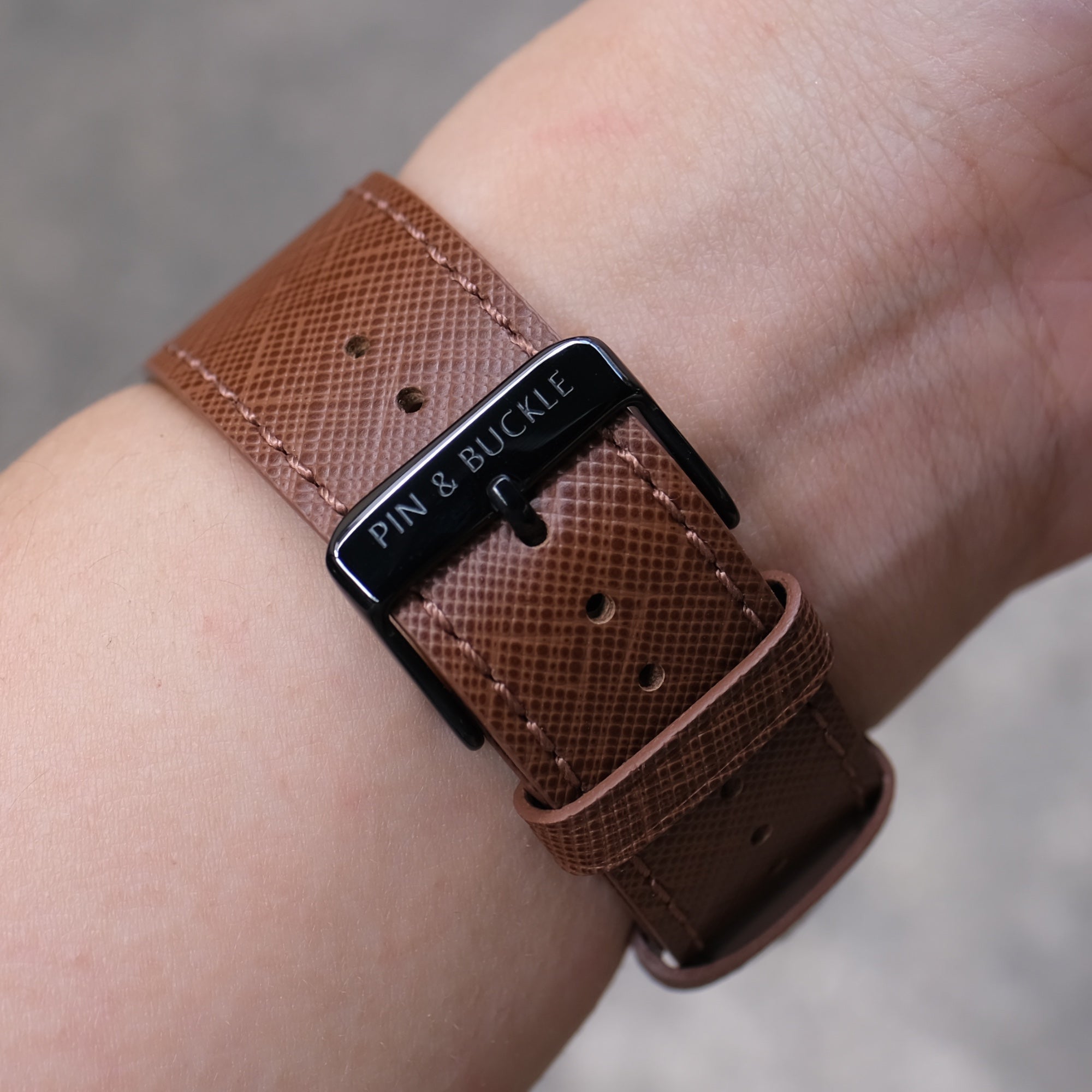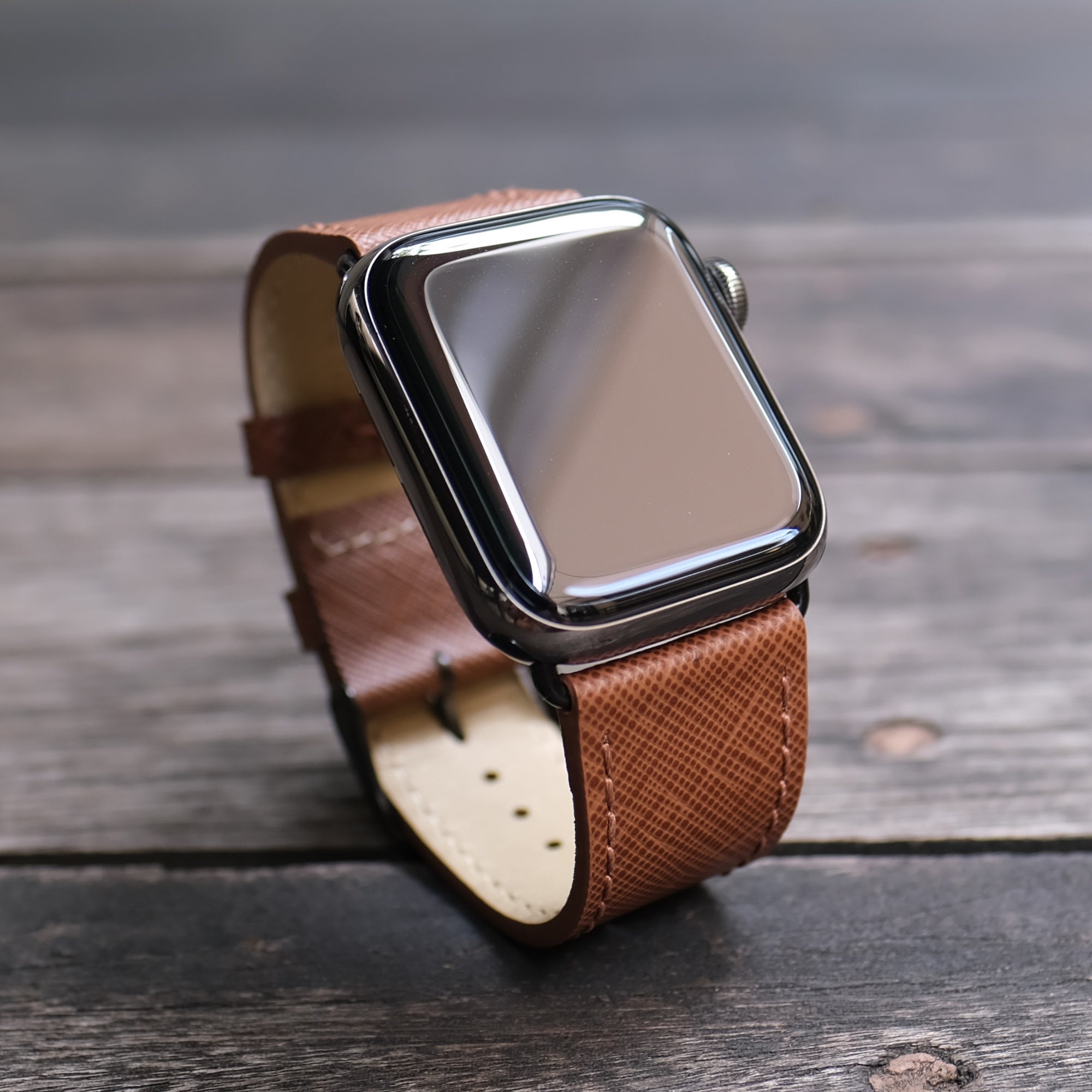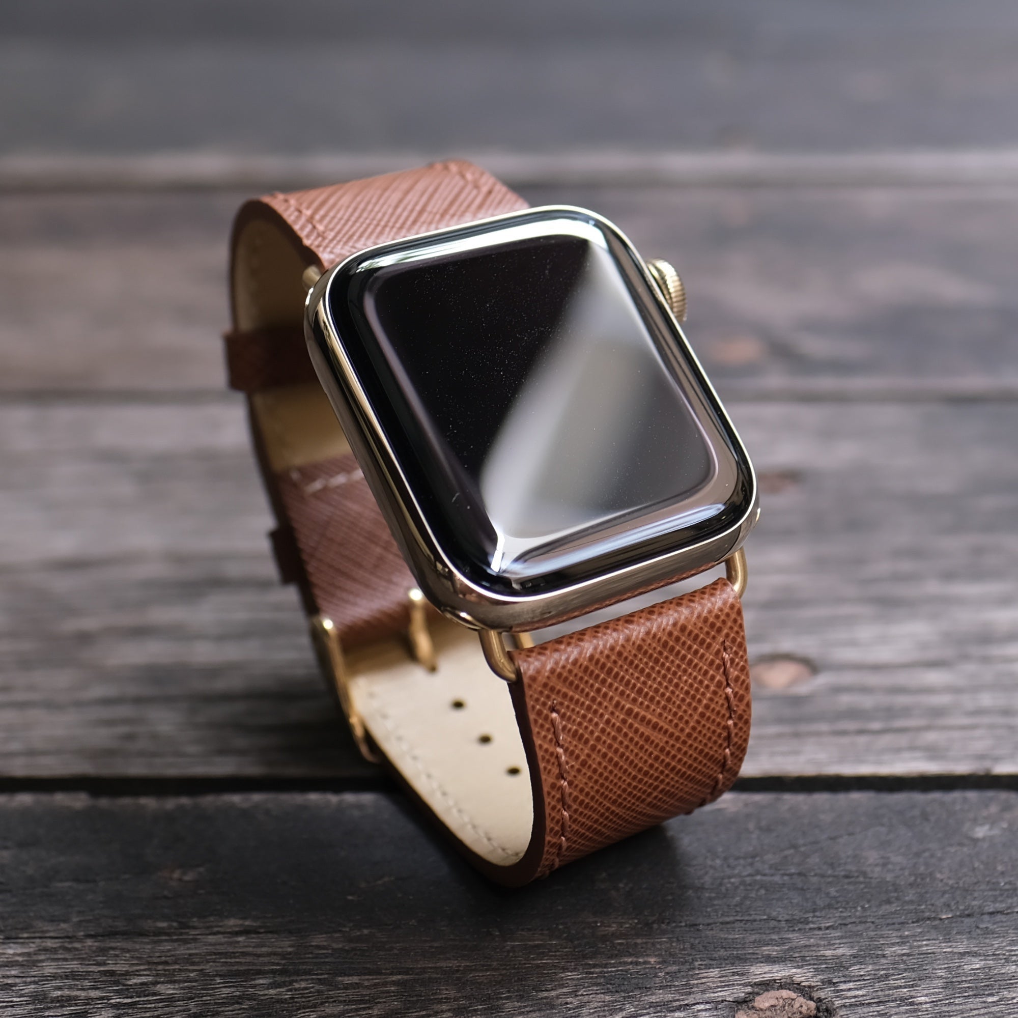 Saffiano Leather Apple Watch Band - Hazel Brown