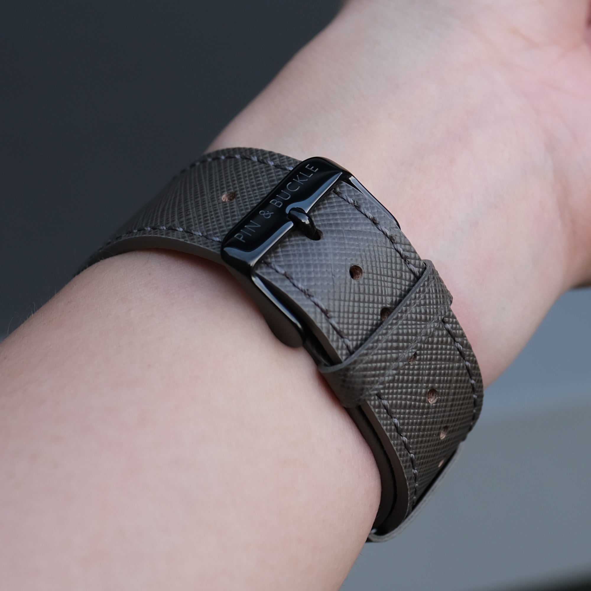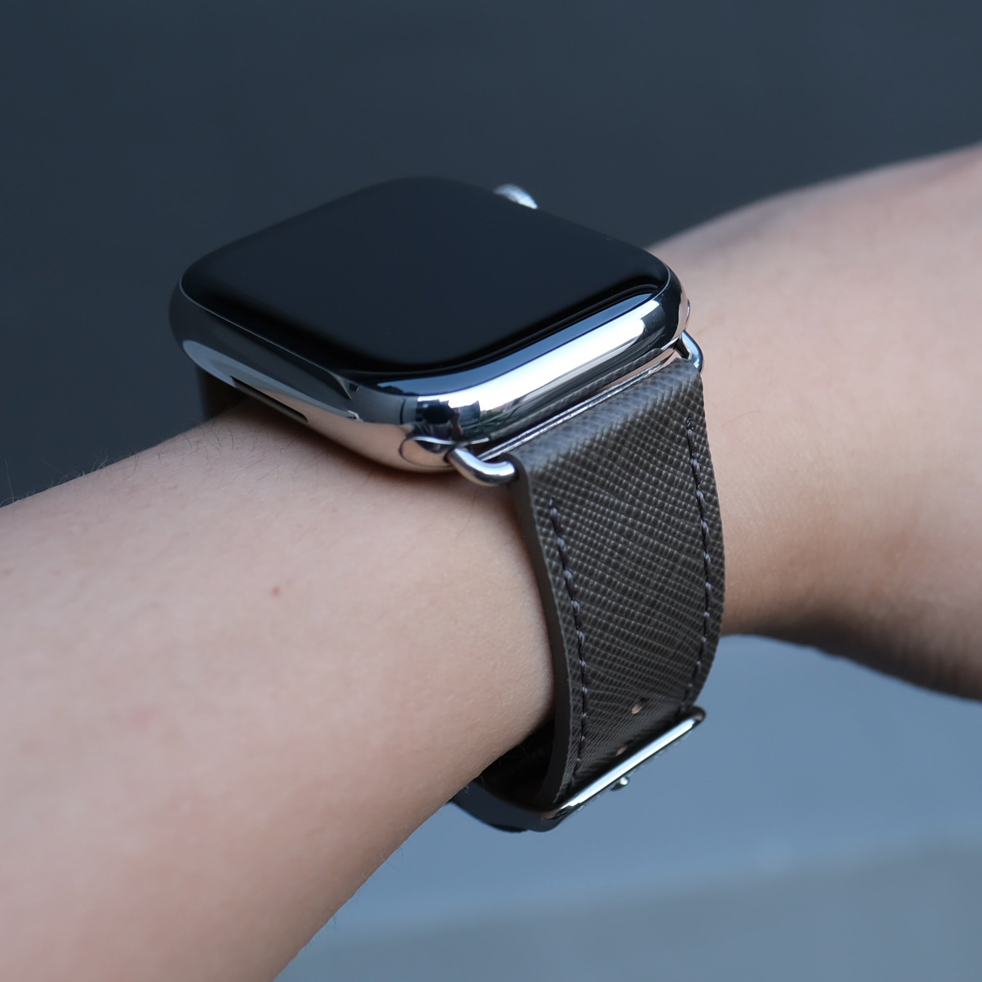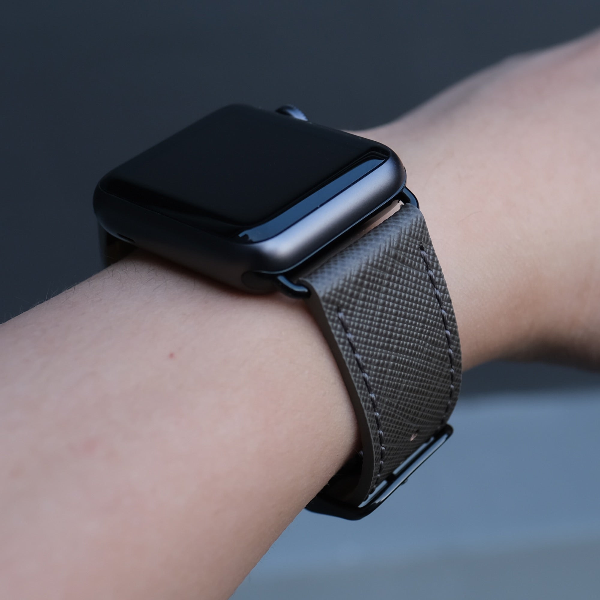 Saffiano Leather Apple Watch Band - Medium Grey