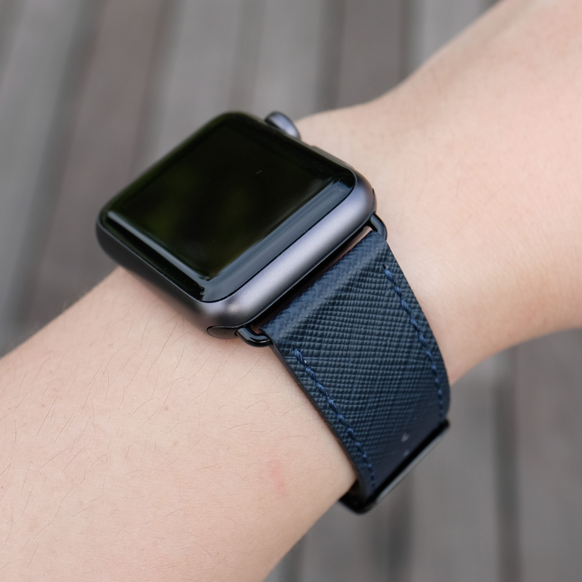 Saffiano Leather Apple Watch Band - Navy Blue