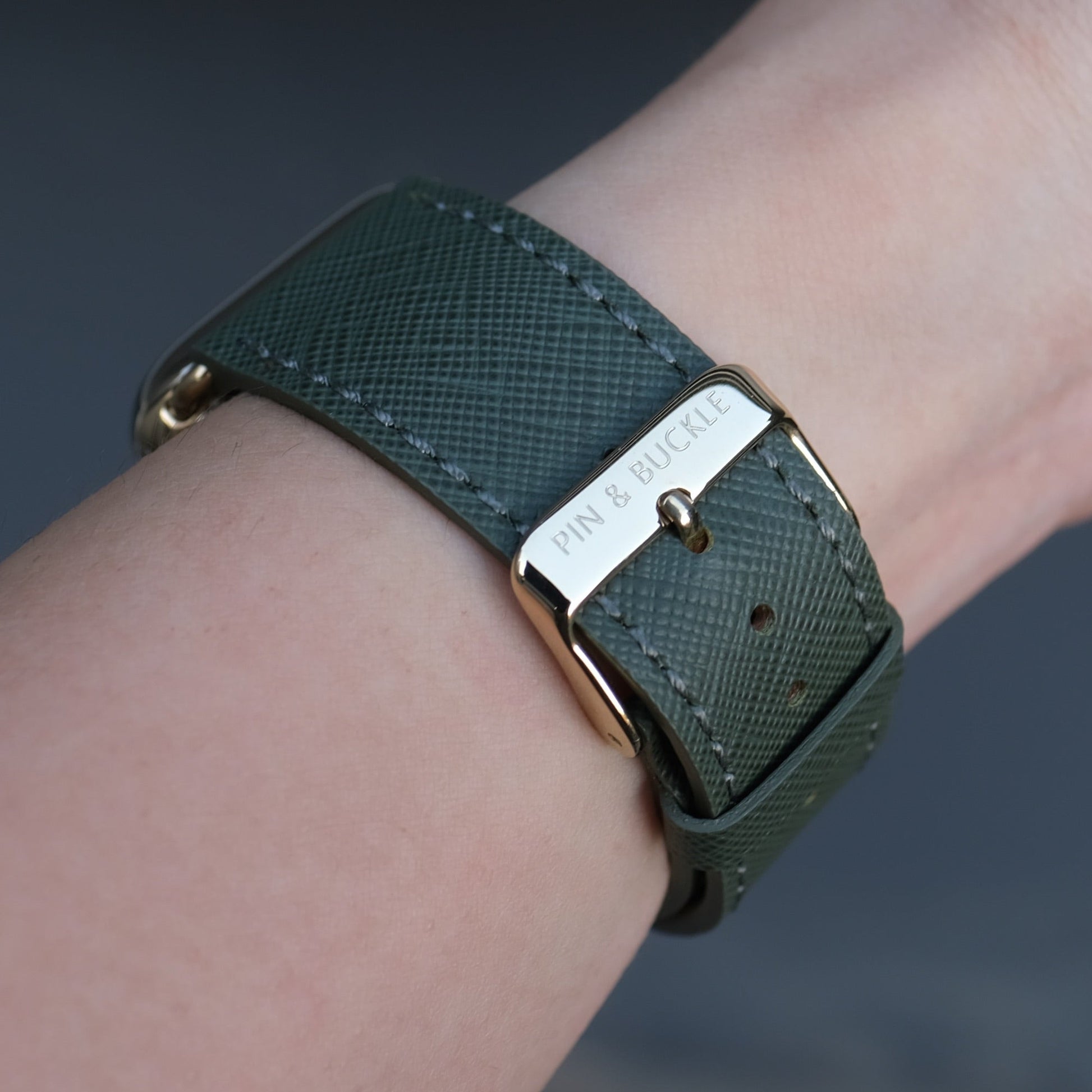 Saffiano Leather Apple Watch Band - Oak Green