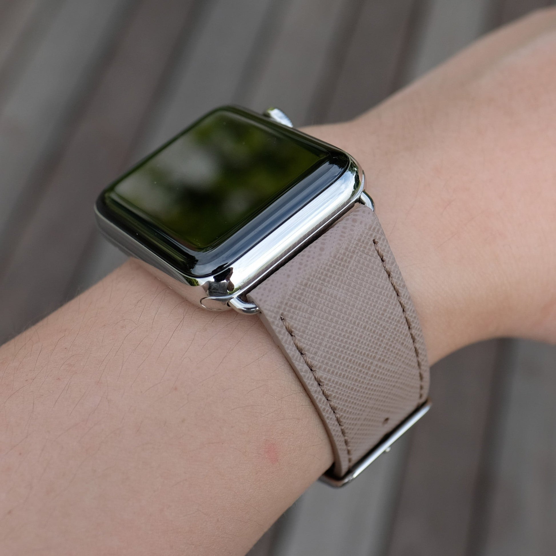 Saffiano Leather Apple Watch Band - Taupe