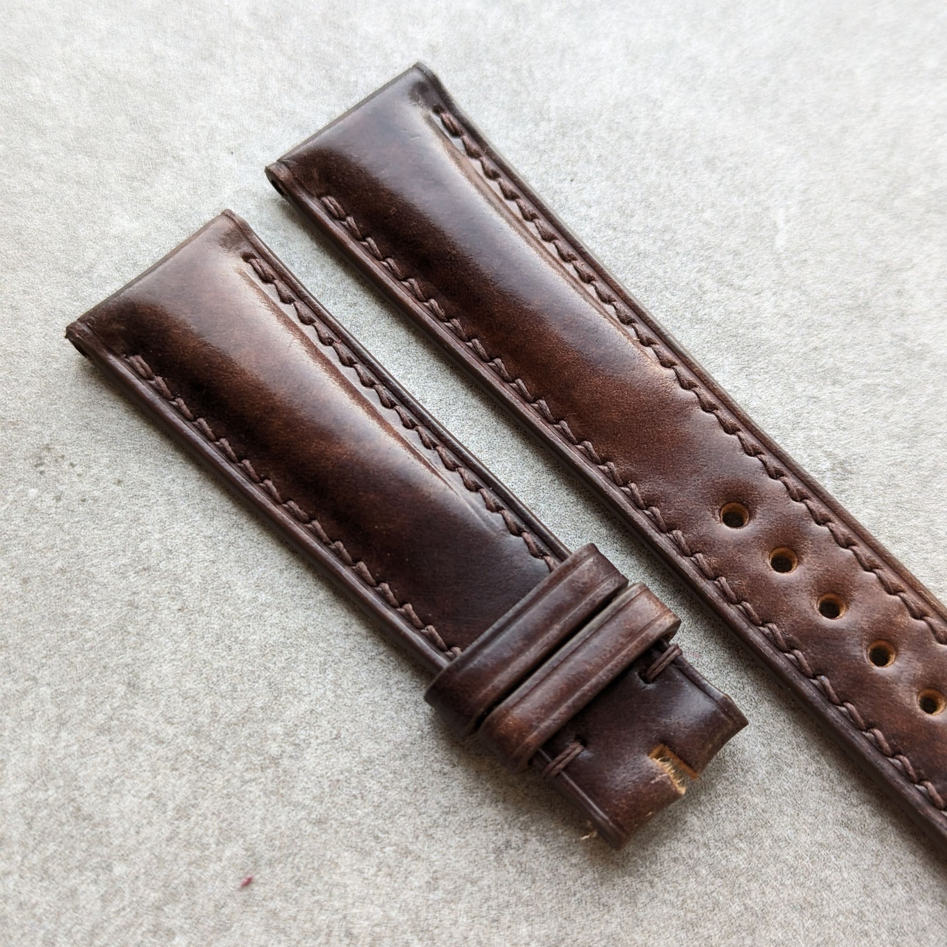 Shell Cordovan Watch Strap - Dark Brown Marbled Museum
