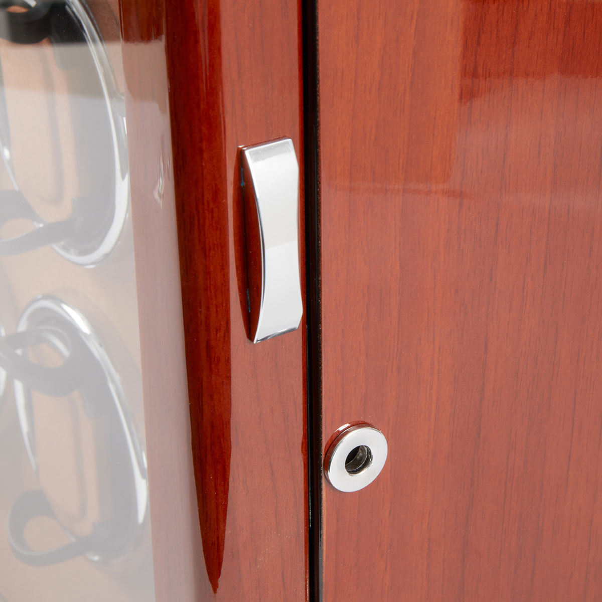 A luxurious burlwood watch winder that winds six watches and stores four more—crafted with precision engineering, security, and timeless elegance.