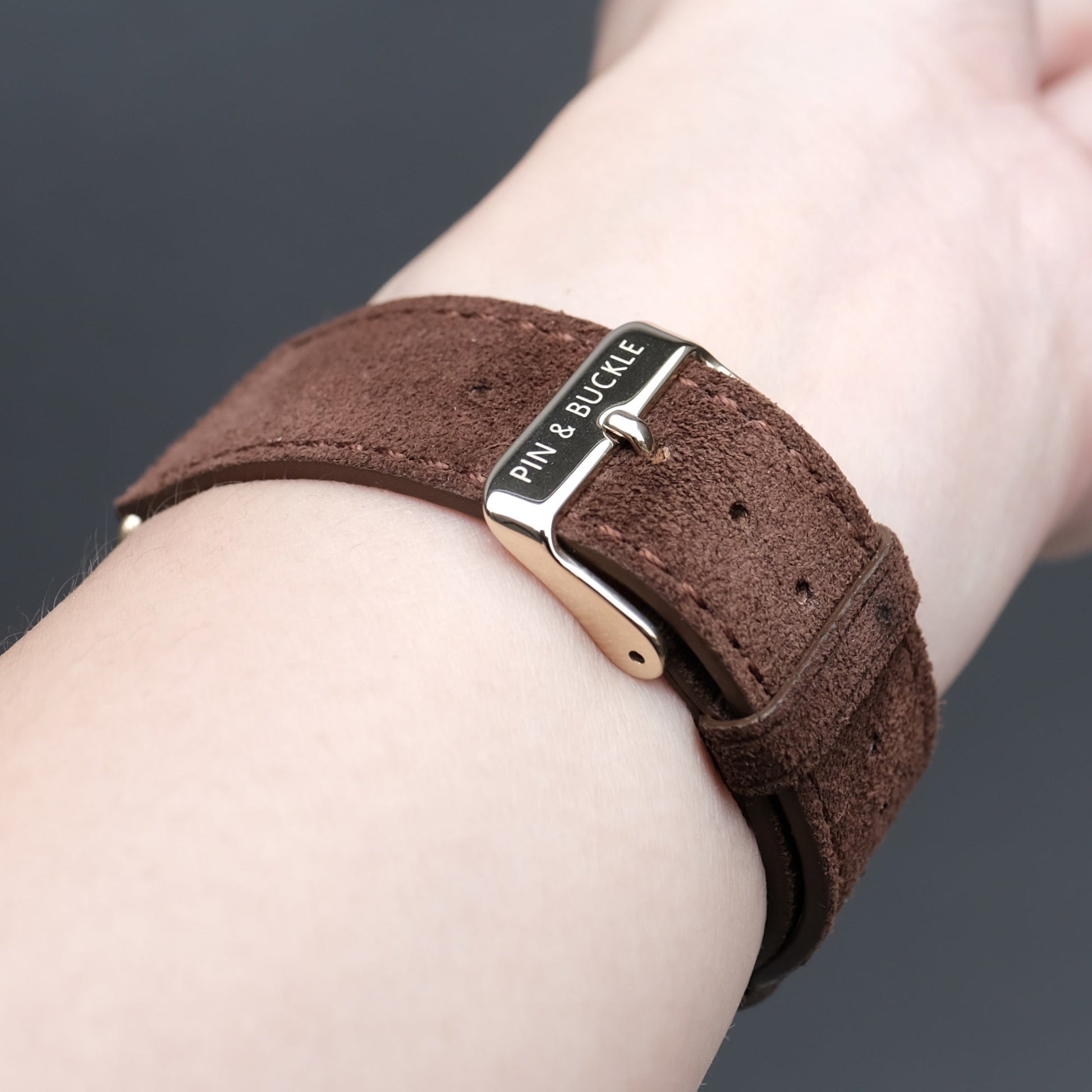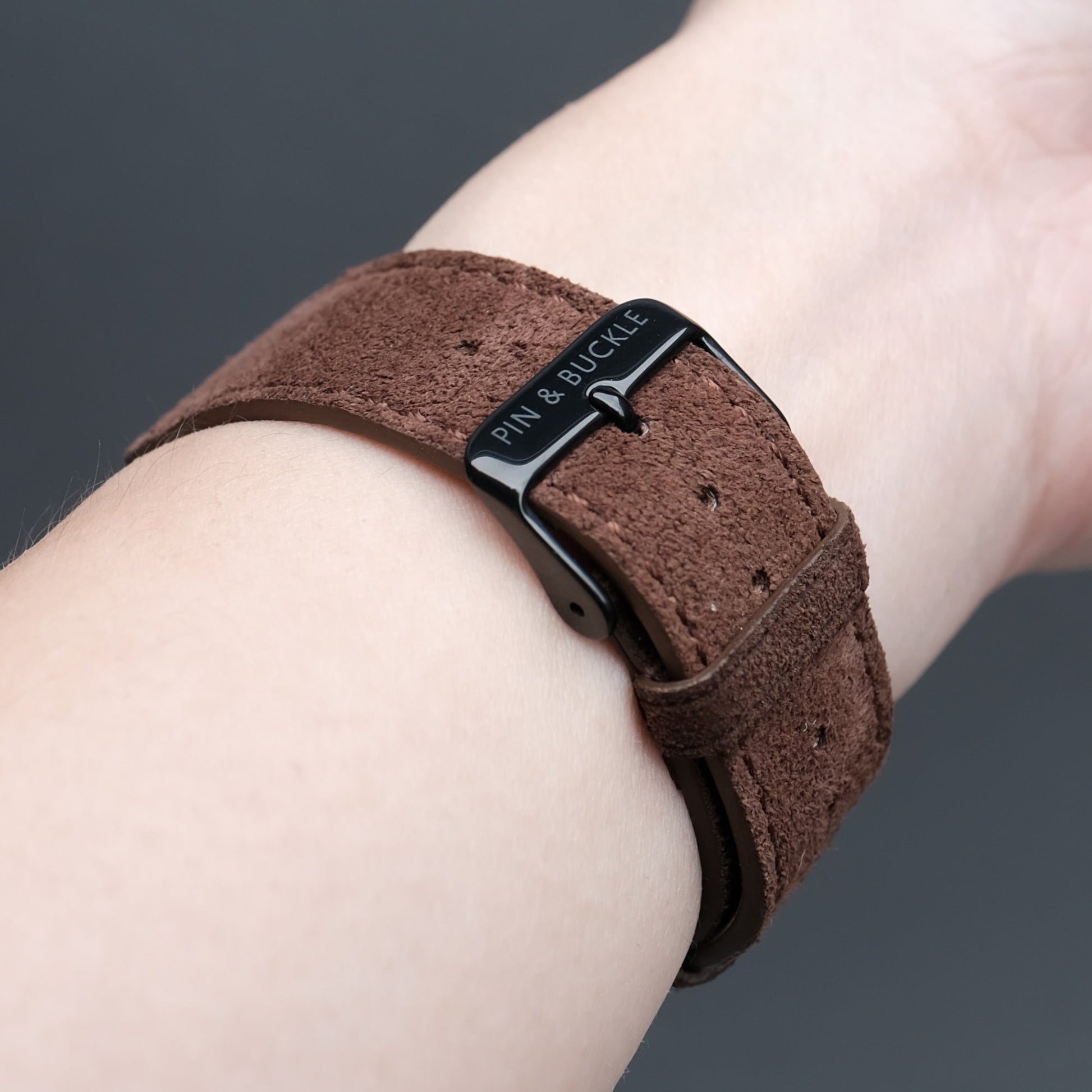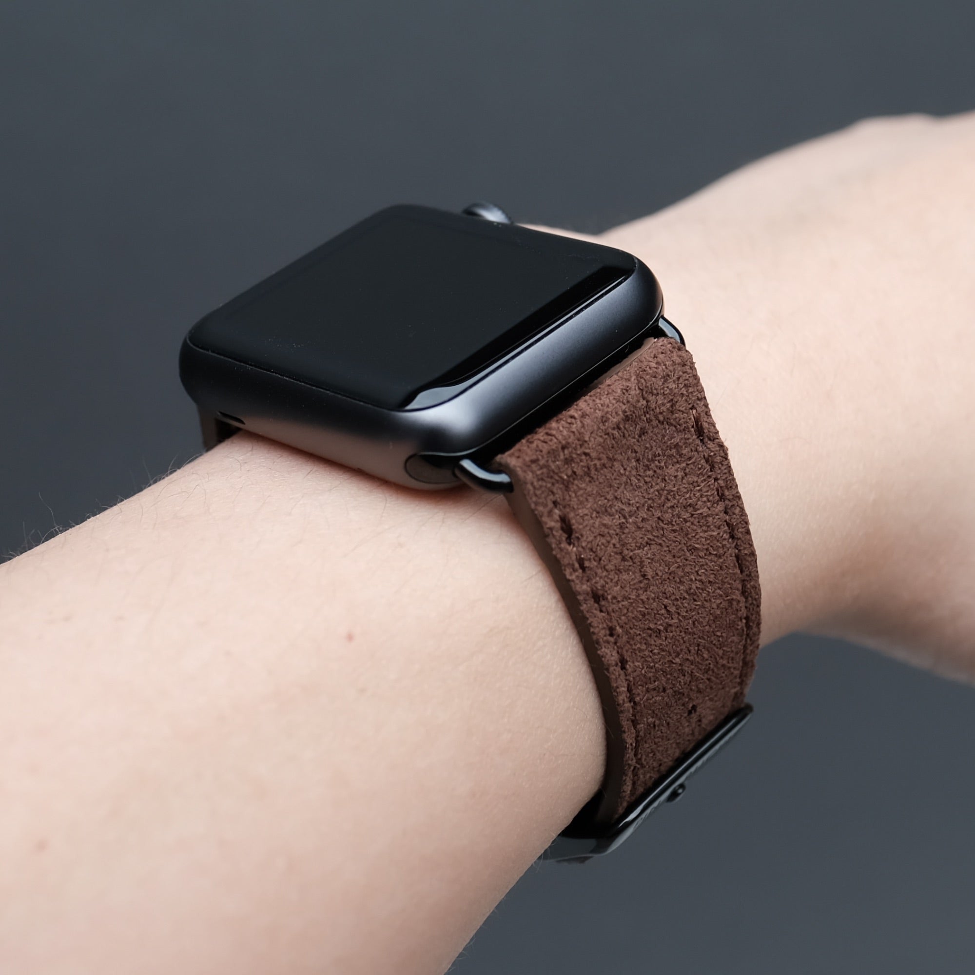 • We've got so many requests for a darker brown suede band, so here you go - the Velour Suede Apple Watch band in Chocolate. Looks like you can never have too many browns.
